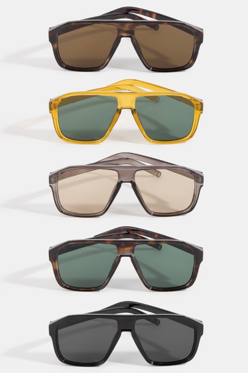 - This set of sunglasses introduces a stunning oversized shield flat top sunglasses set style. Celebrate individual style with this versatile, eye-catching addition.