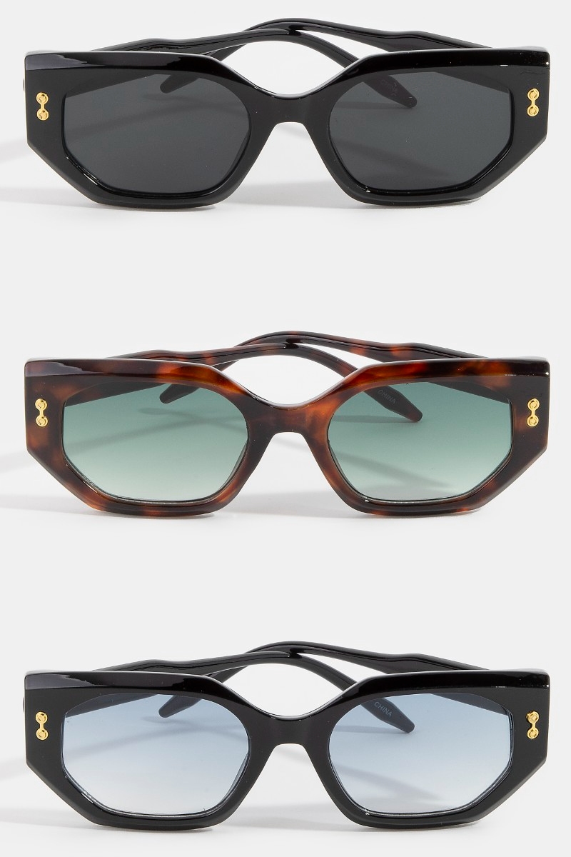 Gold Rivet Wide Square Sunglasses Set