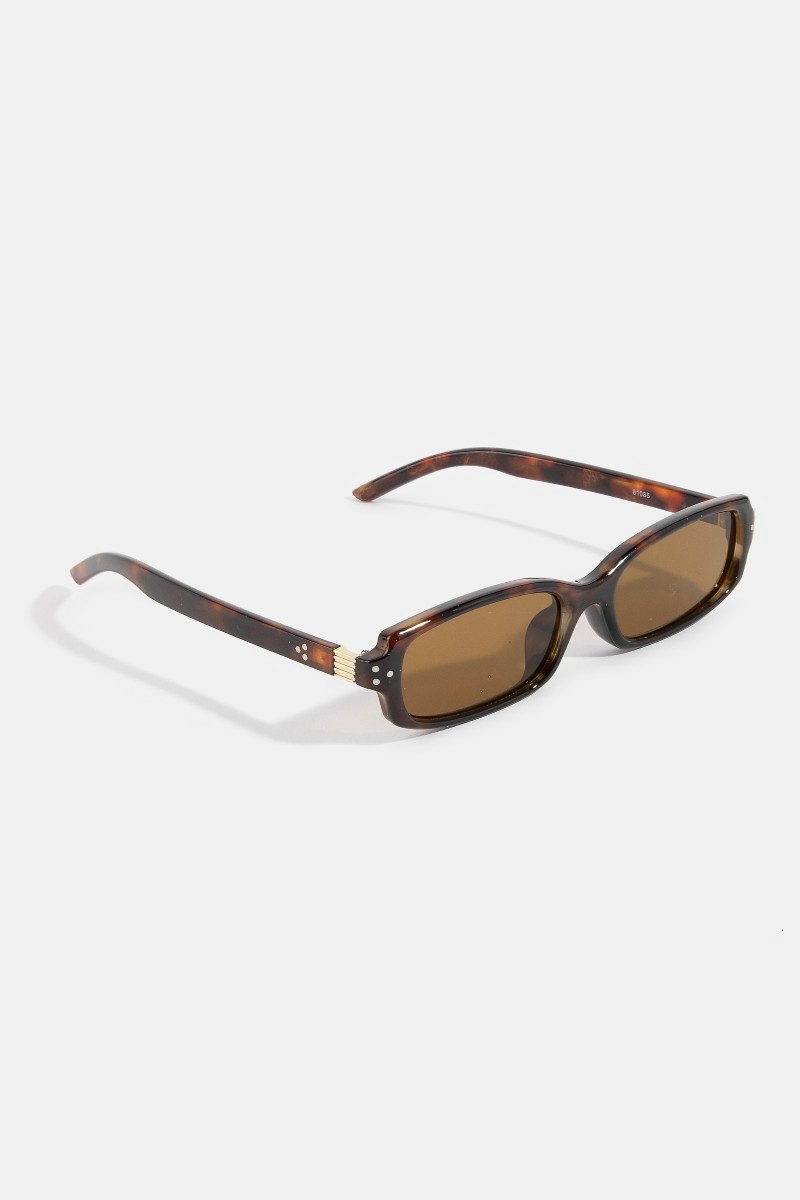 • This set of sunglasses displays a fashionable slim narrow rectangle triple dot detail sunglasses style. Elevate your ensemble with this set of sunglasses that effortlessly captures the essence of refined fashion.