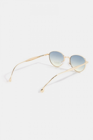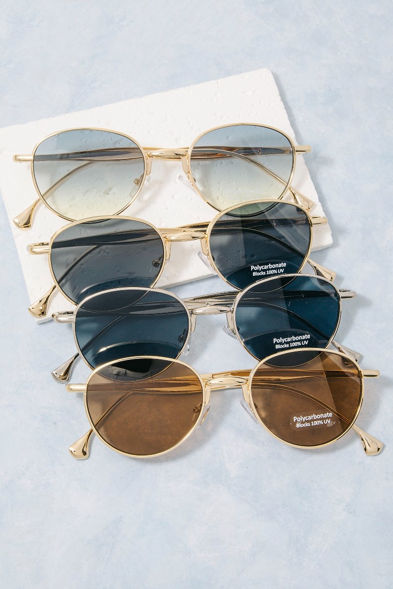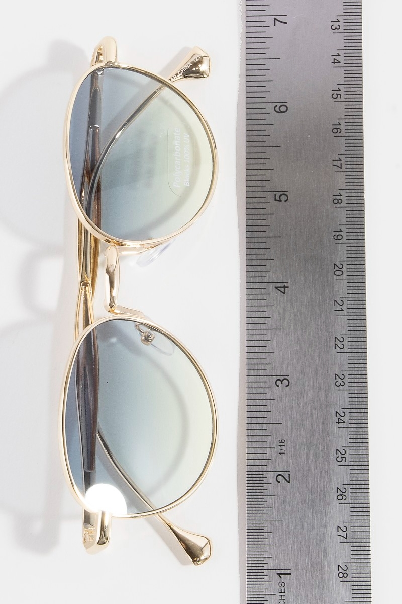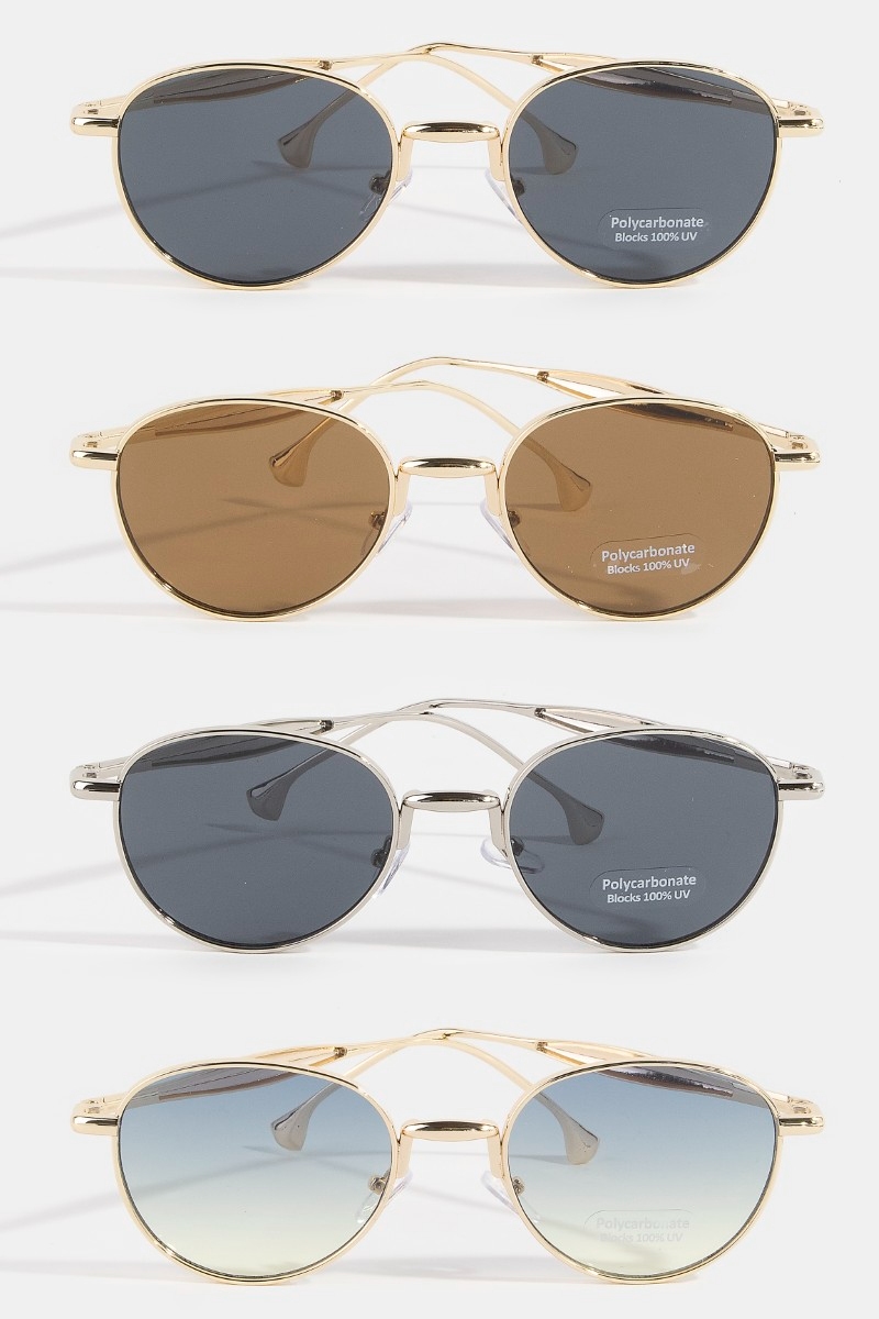 • This set of sunglasses showcases a timeless round metal double-bridge sunglasses style. Immerse yourself in the details of design, as this set of sunglasses effortlessly becomes a conversation starter.
