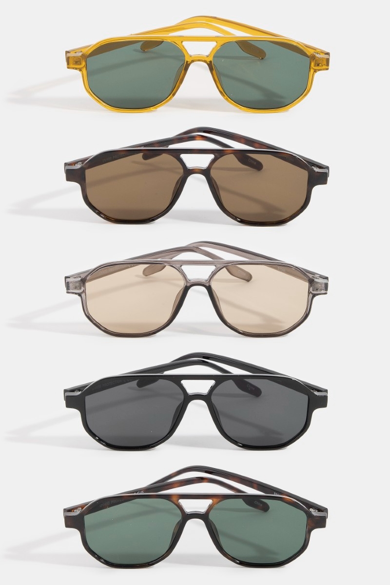 - This set of sunglasses brings a unique retro aviator double bridge sunglasses set style. Embark on a journey of sartorial refinement as this set of sunglasses effortlessly complements your fashion sense.