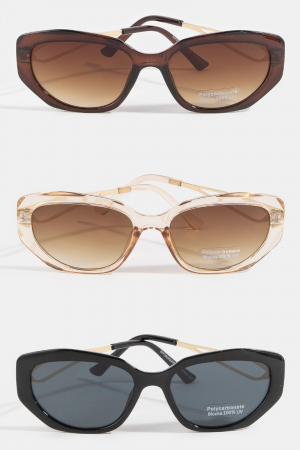 Angular Cat Eye Rivet Detail Sunglasses Set