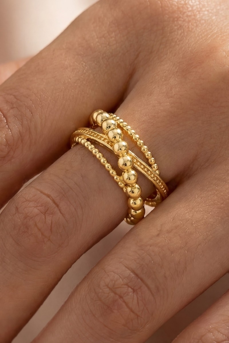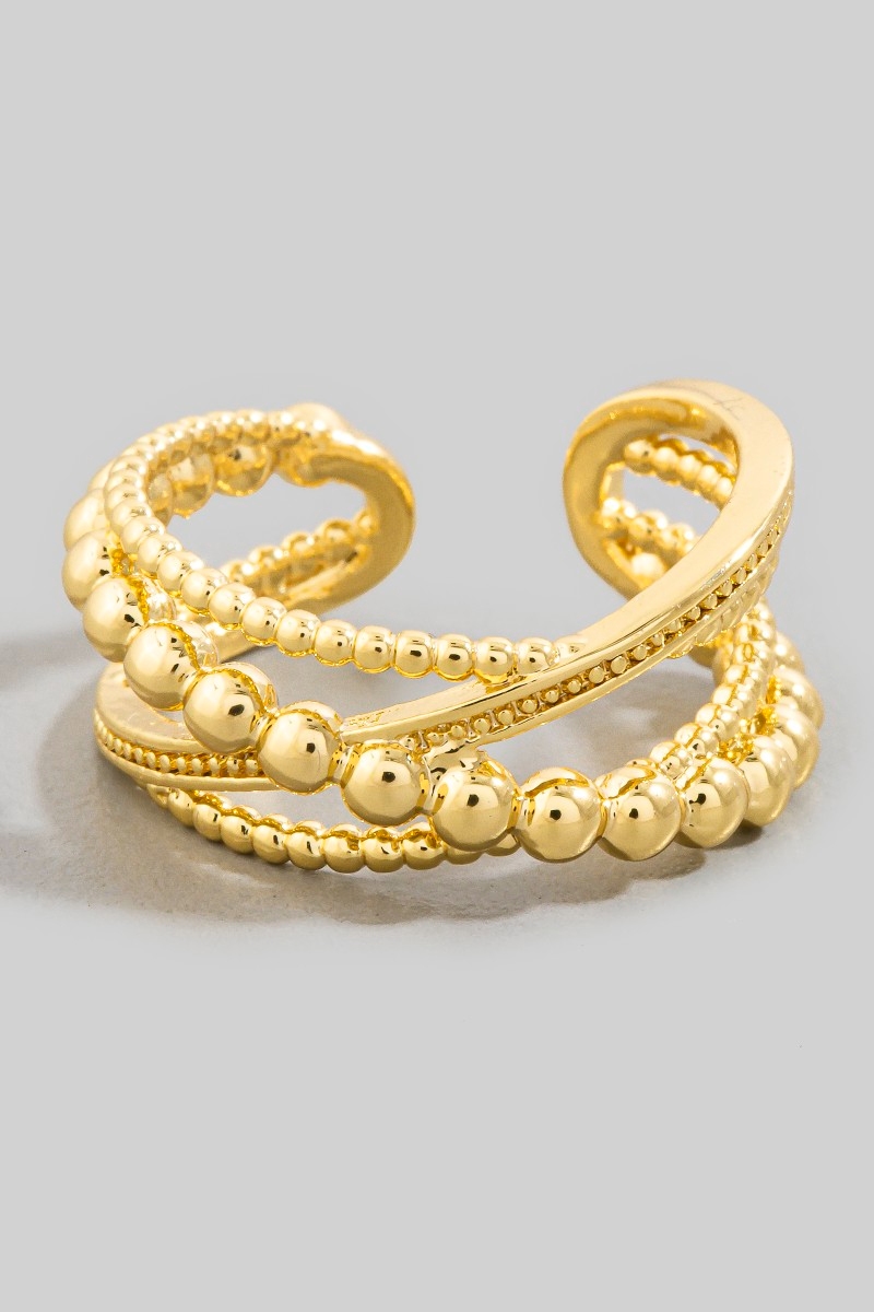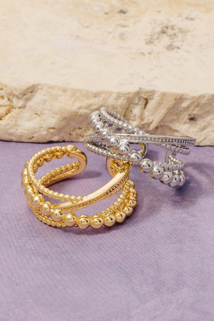 - This ring brings a luxurious ball beaded multi row twist fashion style. Celebrate individuality with this ring that effortlessly expresses your unique sense of style.