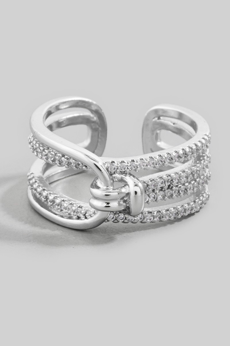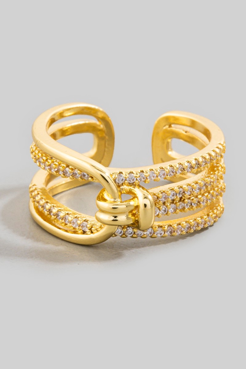 - This ring brings a unique pave multi row center knot adjustable style. Savor the craftsmanship that goes beyond the ordinary, as this ring effortlessly captivates attention.