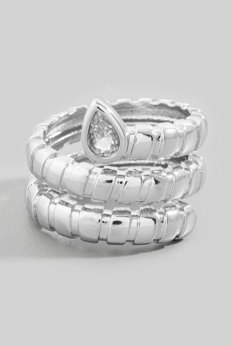 - This ring features a fashionable cz teardrop coil twist style. Explore a refined sense of style with this ring, seamlessly elevating the chic factor of your look.