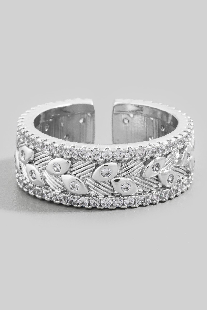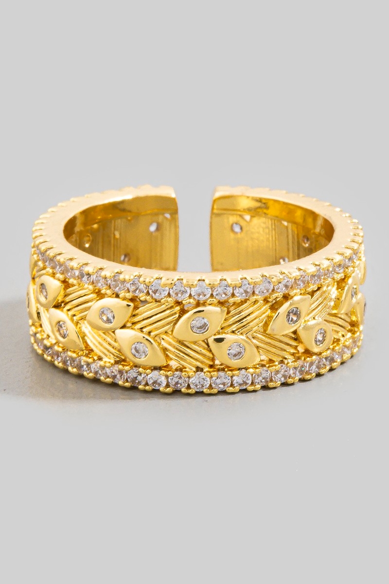 - This ring brings a stunning cz trim evil eye detail adjustable style. Celebrate individual style with this versatile, eye-catching addition.