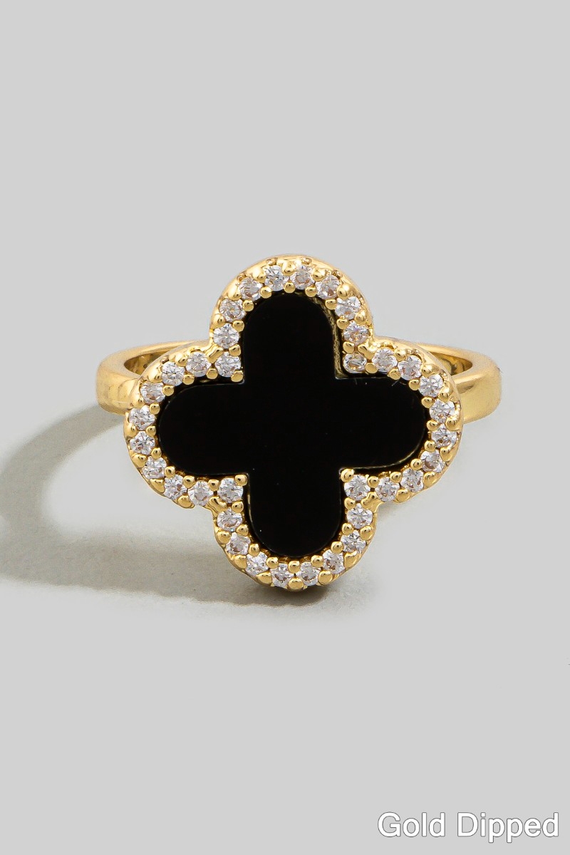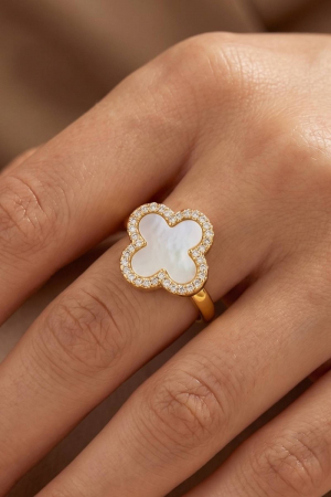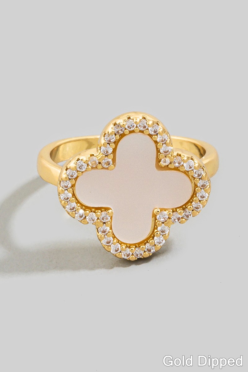 - This ring showcases a unique cz pavé mother-of-pearl clover style. Elevate your ensemble with this chic, timeless ring.