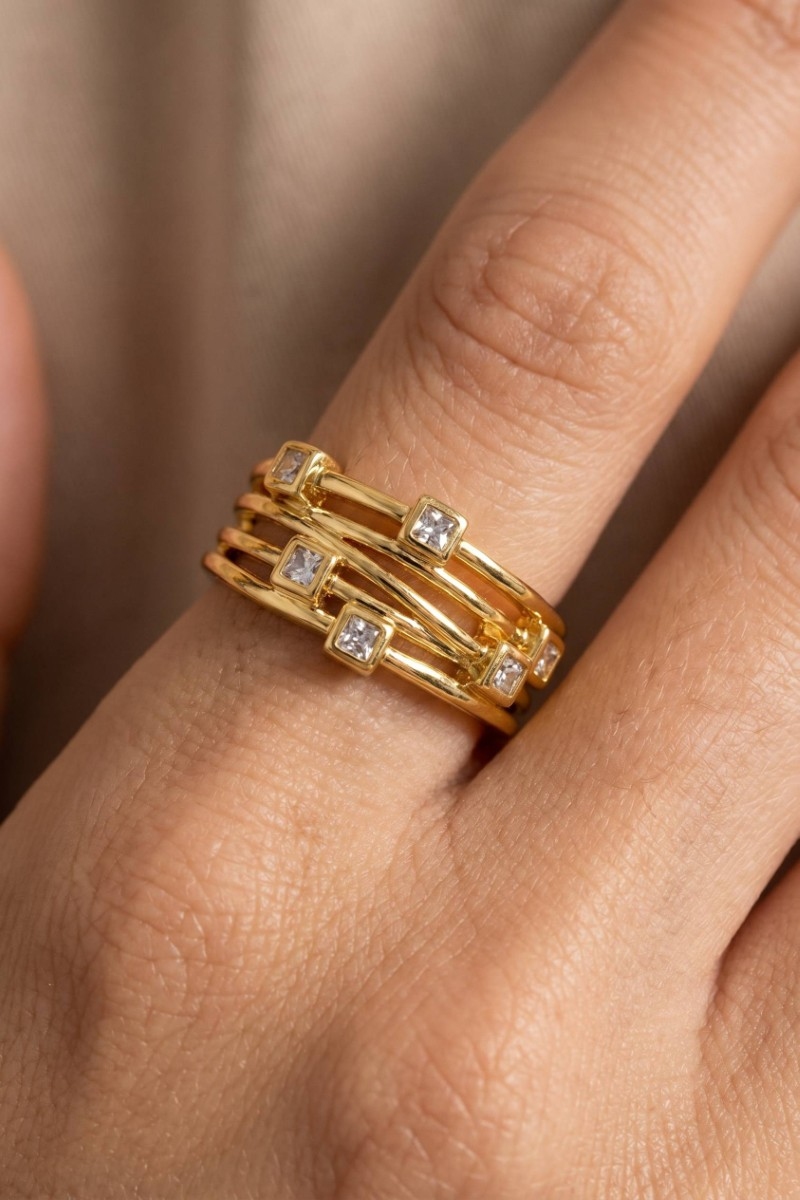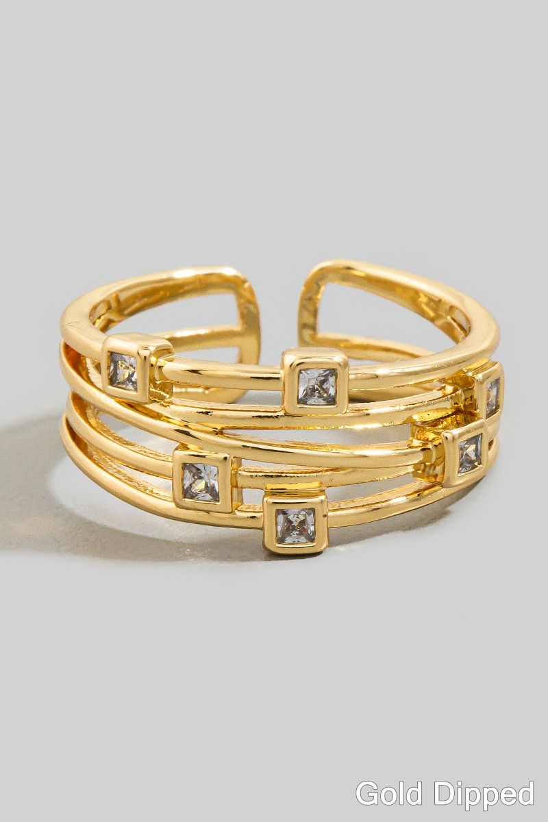 - This ring brings a luxurious multi-band square cubic zirconia station open cuff style. Explore a refined sense of style with this ring, seamlessly elevating the chic factor of your look.
