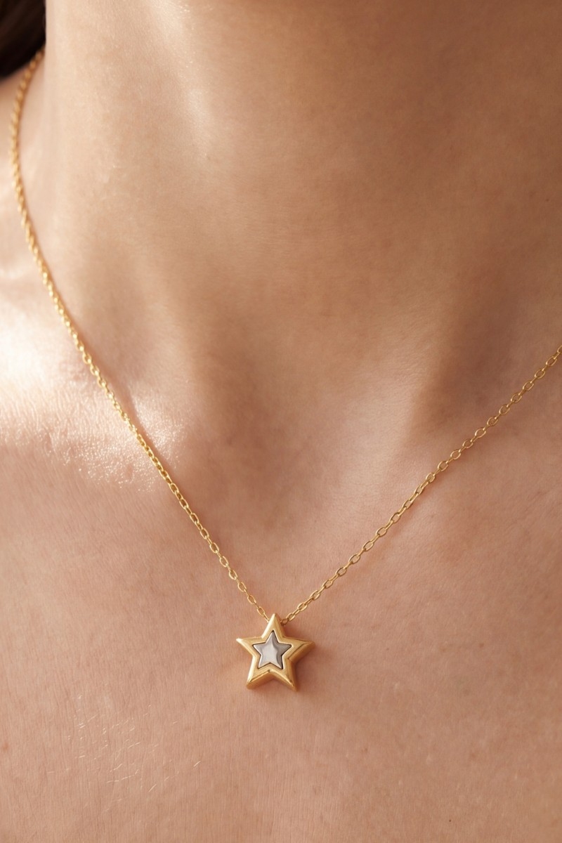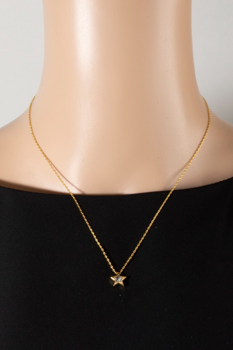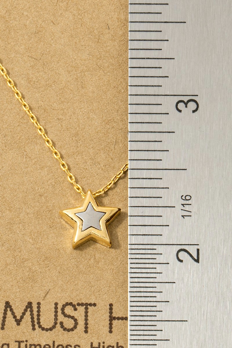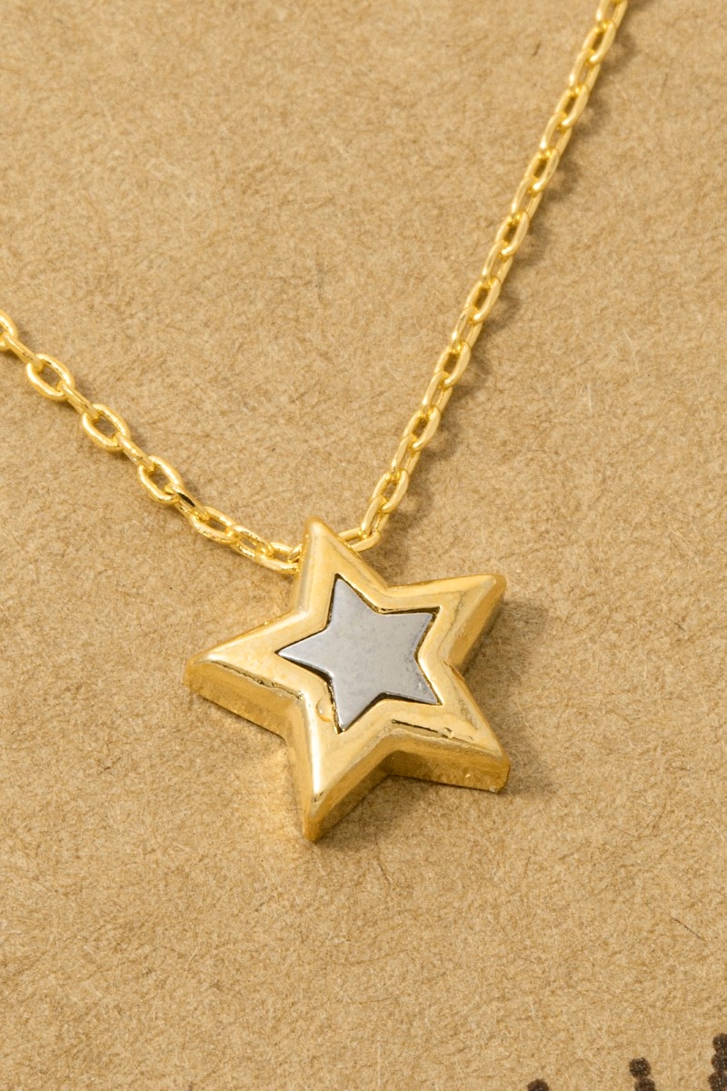 - This pendant necklace brings a unique 18k gold dipped two tone star style. Savor the allure of detailed craftsmanship in this exquisite pendant necklace.