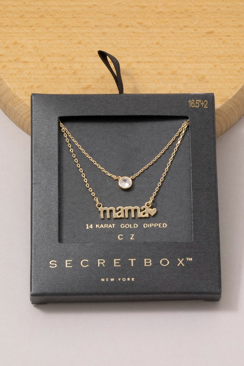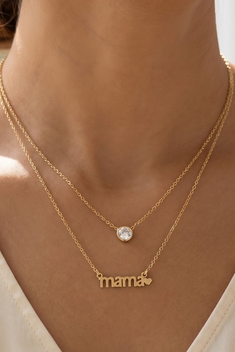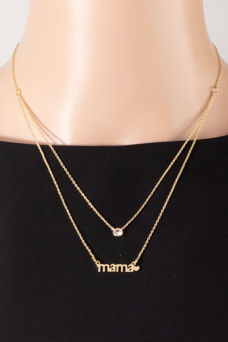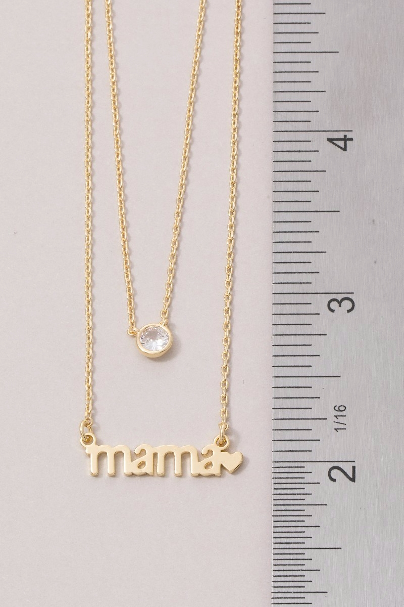 • This necklace displays a vibrant 14k gold dipped layered mama cubic zirconia style. Redefine your look effortlessly with this standout, on-trend piece.