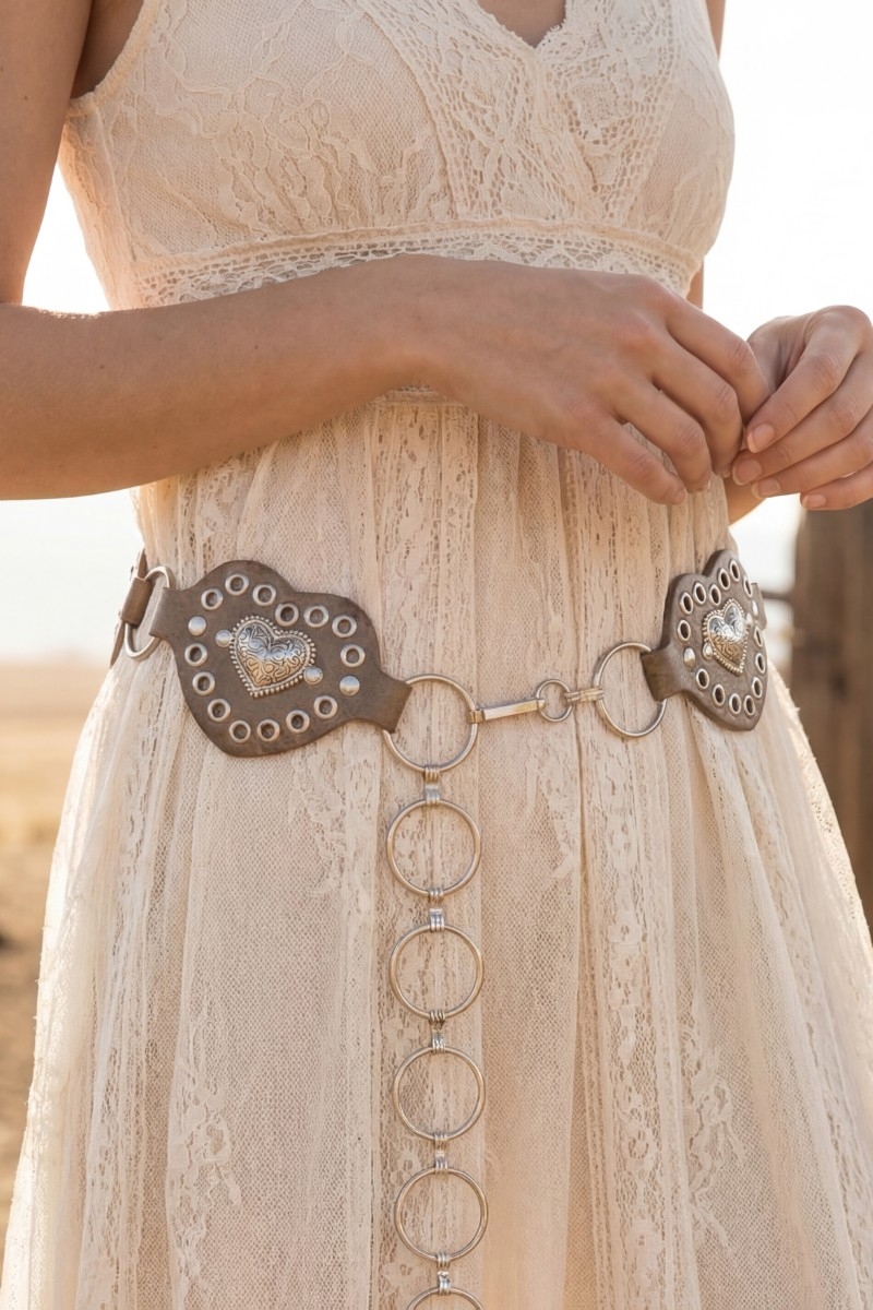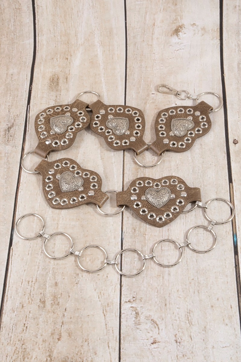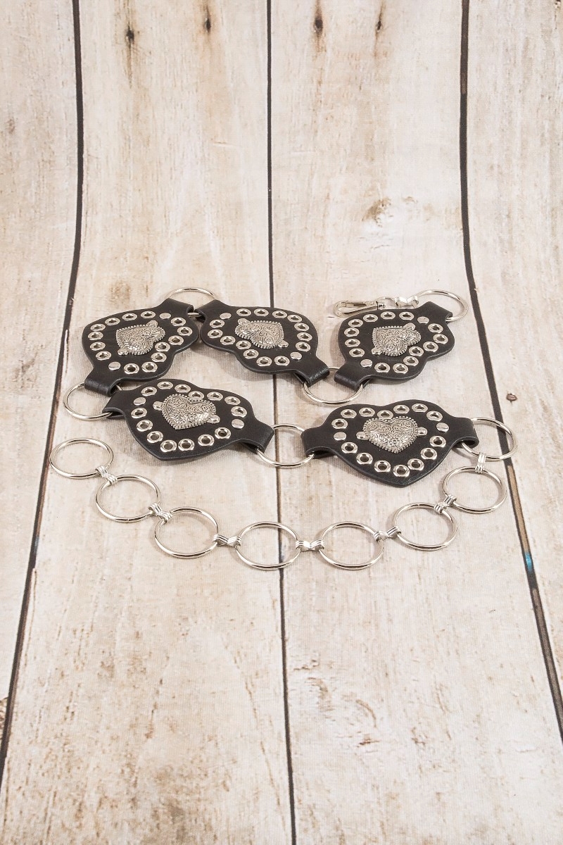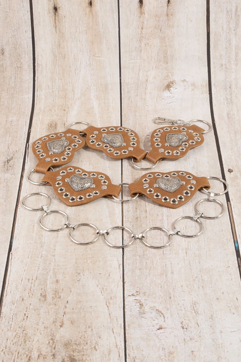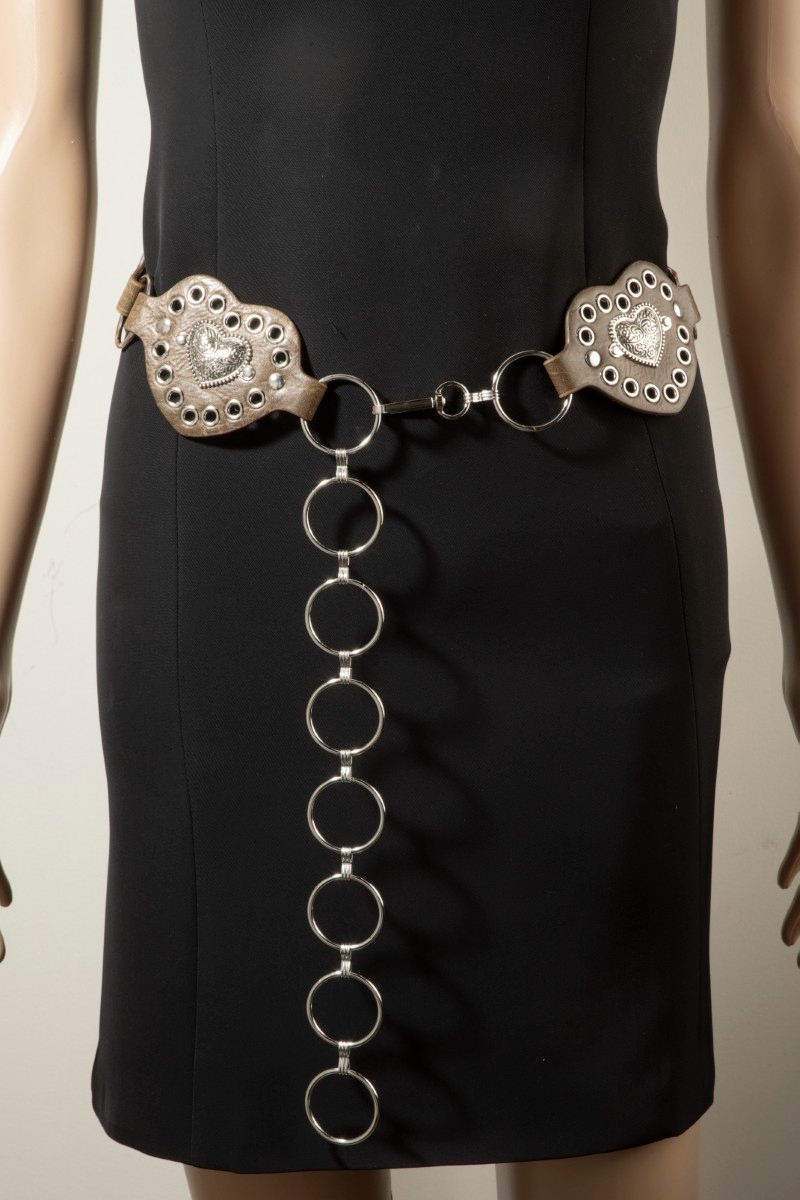 • This chain belt introduces a stunning heart concho ring style. Elevate your ensemble with this chic, timeless chain belt.