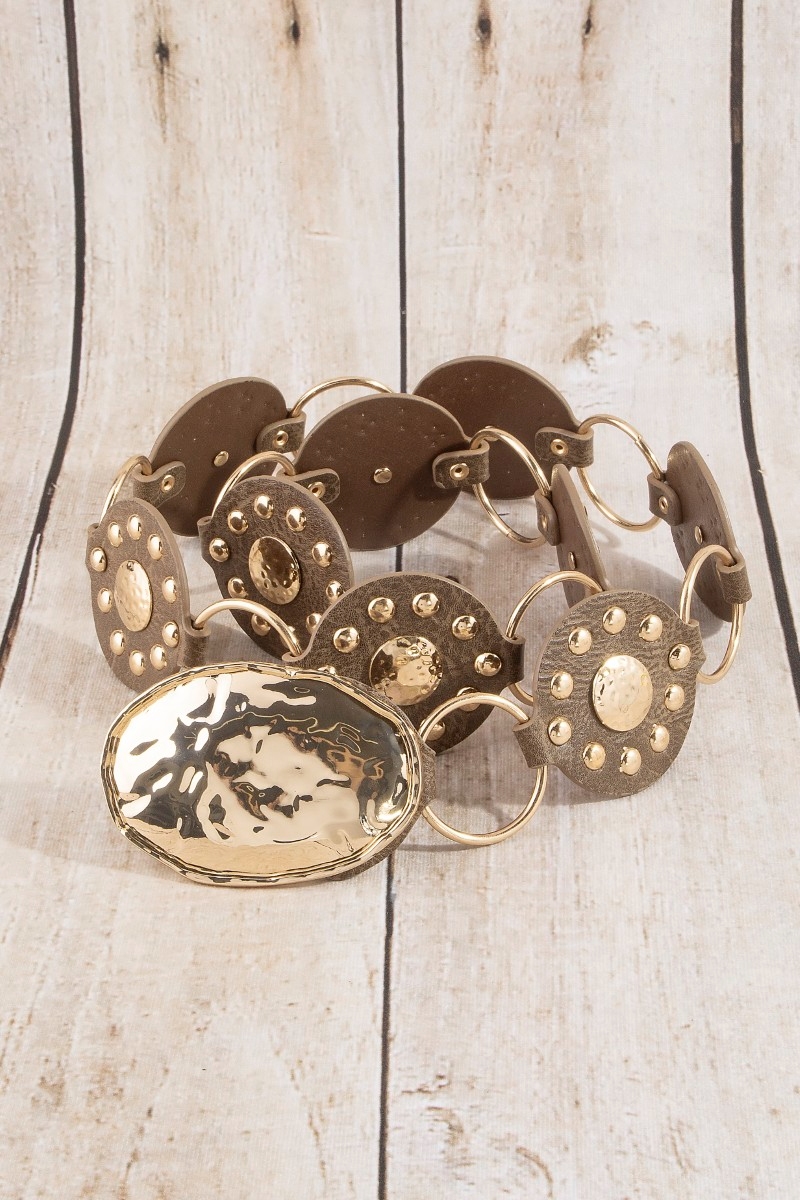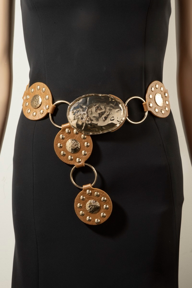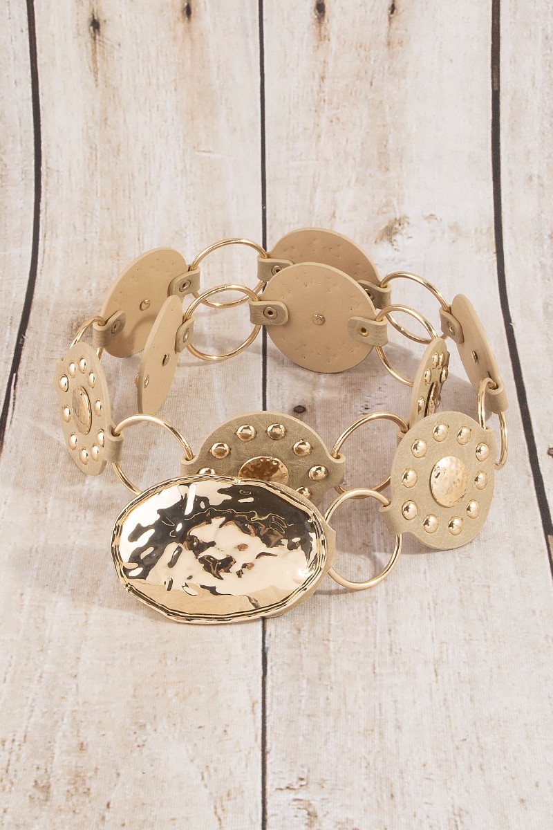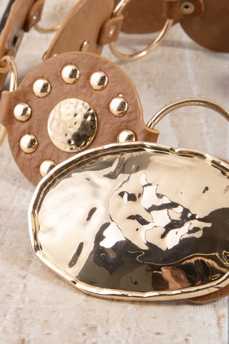 • This chain belt brings a luxurious gold studded circle ring style. Experience a subtle blend of modernity and classic charm as this chain belt effortlessly adorns your ensemble.