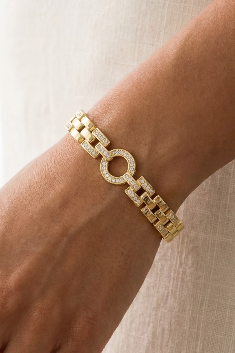 - This bracelet brings a luxurious pave chain link circle style. Revel in the intricate design that effortlessly distinguishes this bracelet, making it a statement piece.