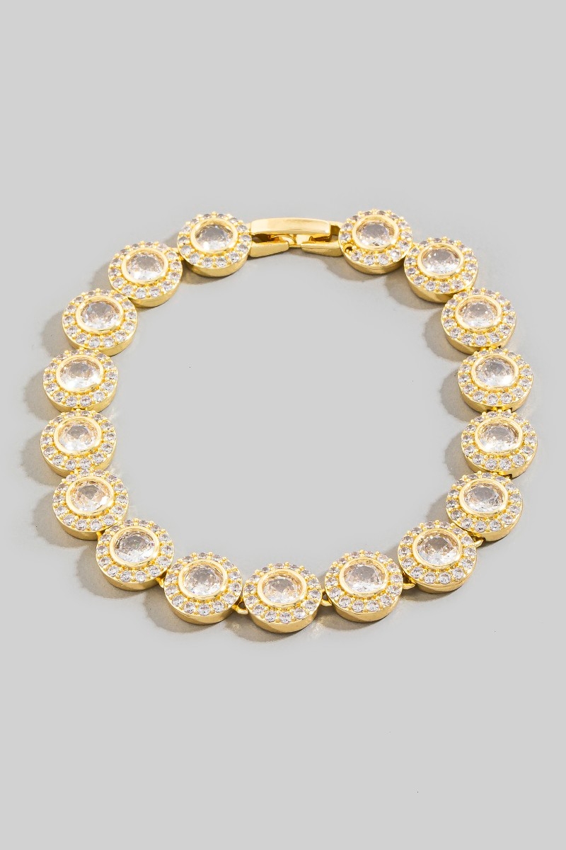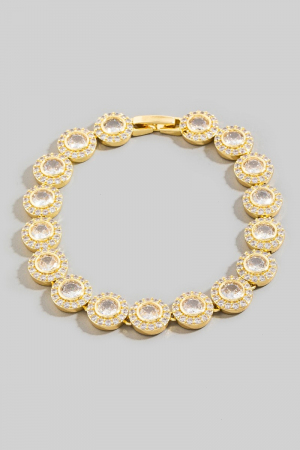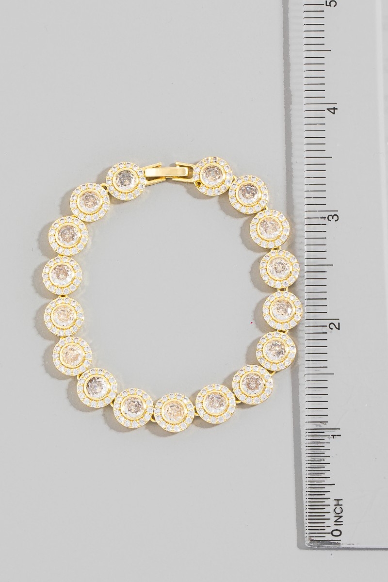- This bracelet displays a vibrant round cubic zirconia chain link style. Savor the allure of detailed craftsmanship in this exquisite bracelet.