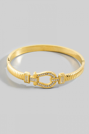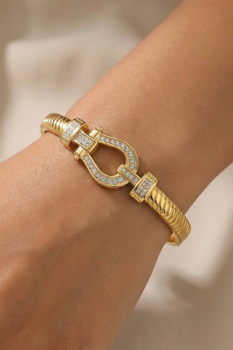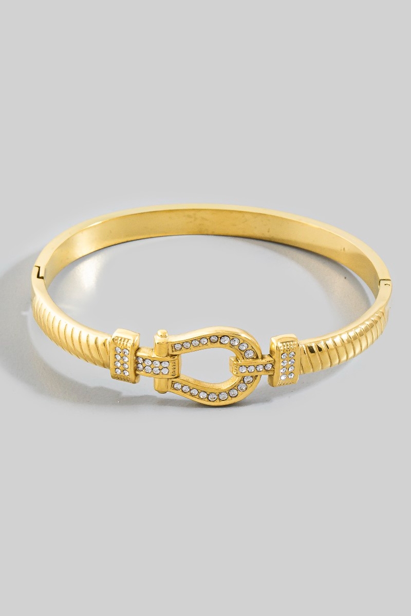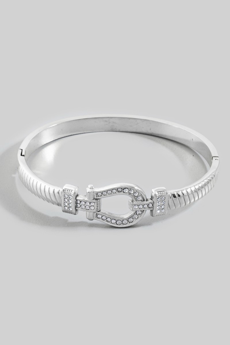 - This bangle bracelet brings a stunning stainless steel pave horseshoe style. Immerse yourself in the world of understated glamour as this bangle bracelet effortlessly exudes timeless appeal.