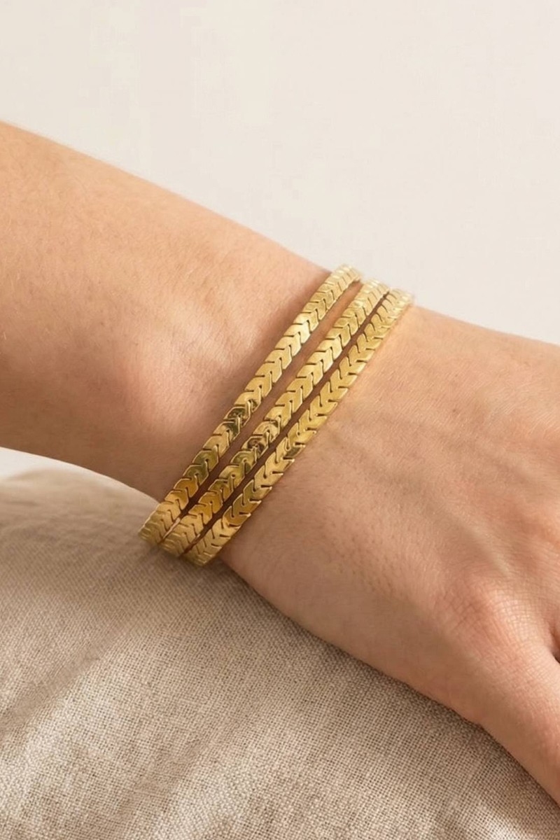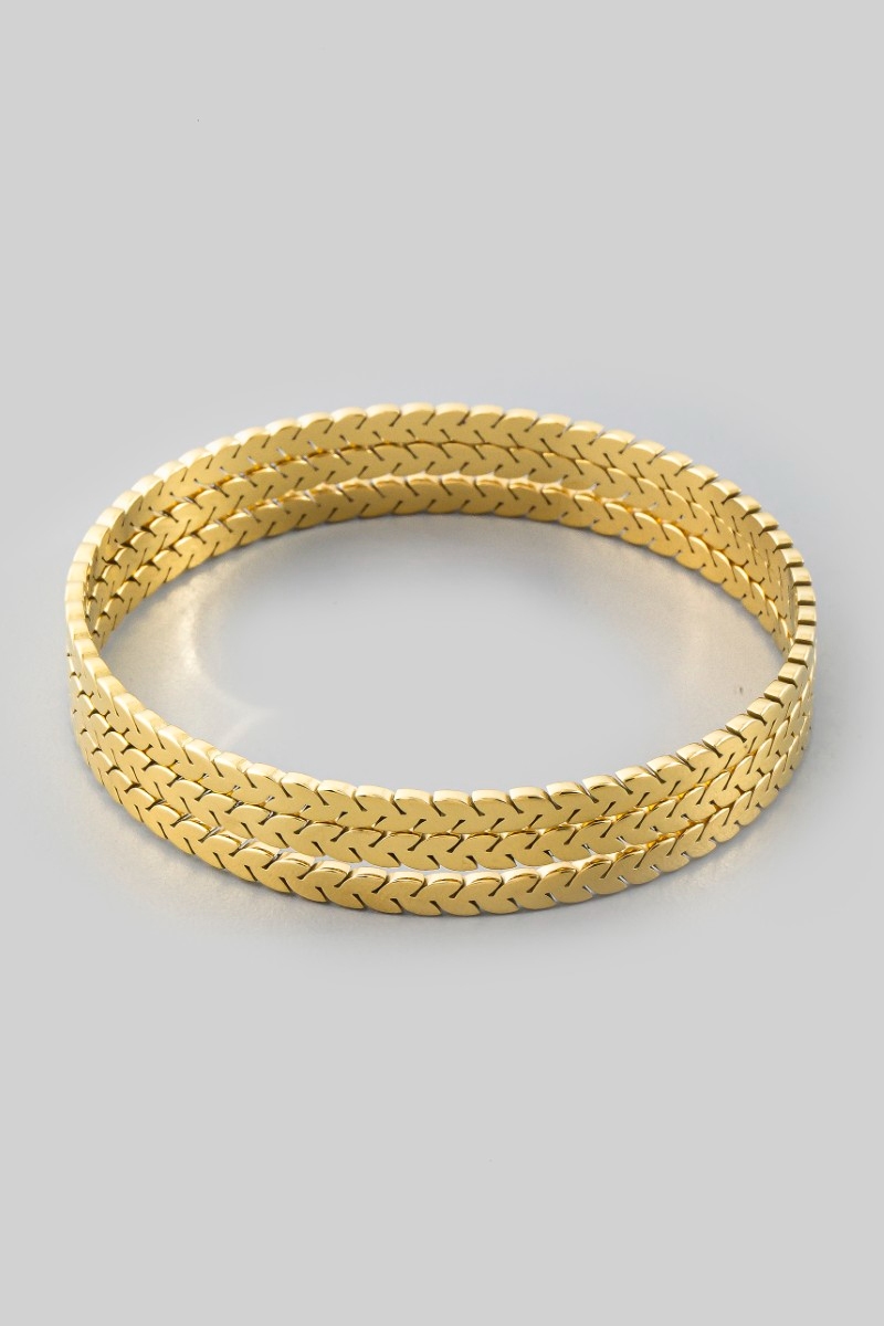 • This bangle bracelet brings a luxurious stainless steel herringbone chain stackable style. Redefine your look effortlessly with this standout, on-trend piece.