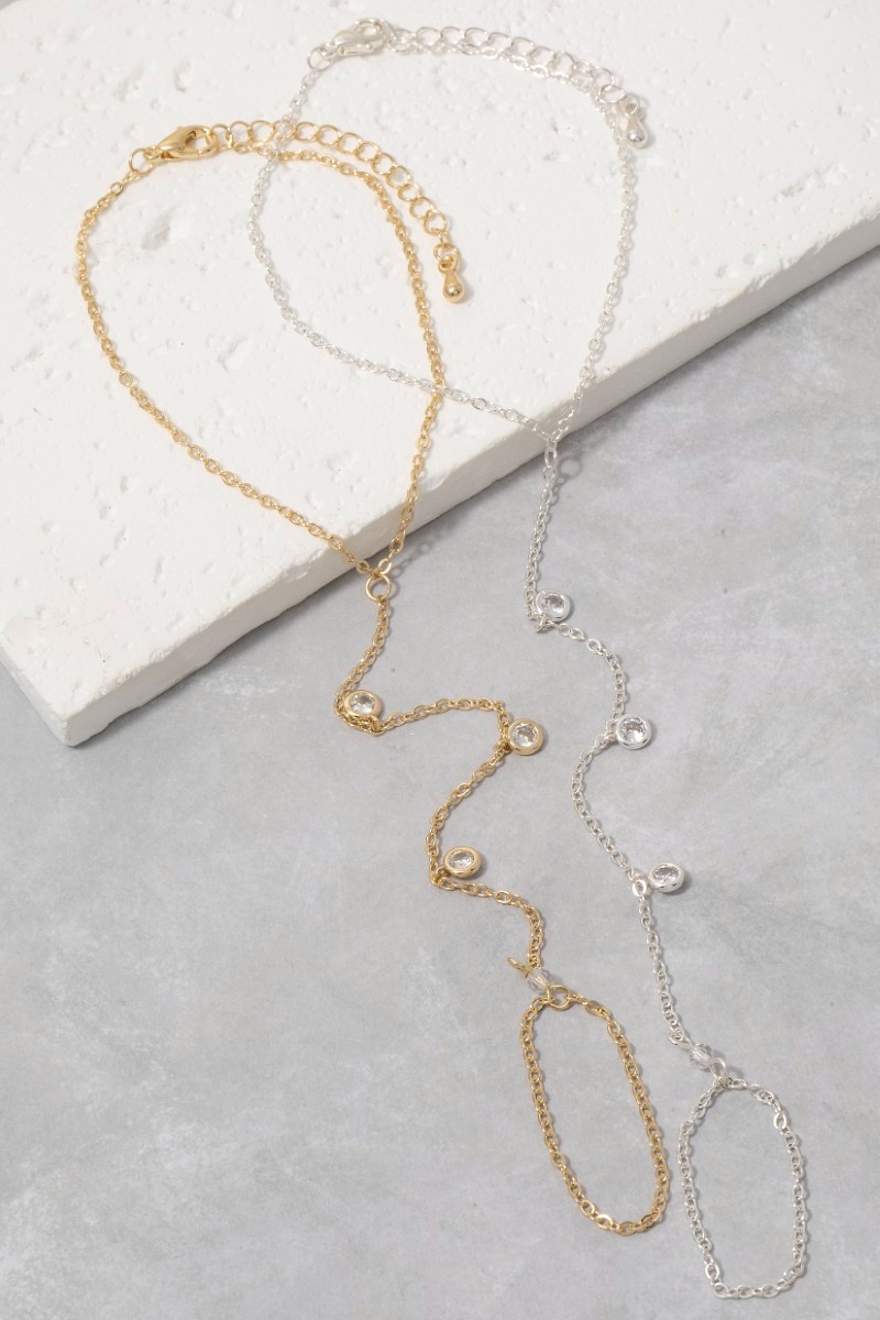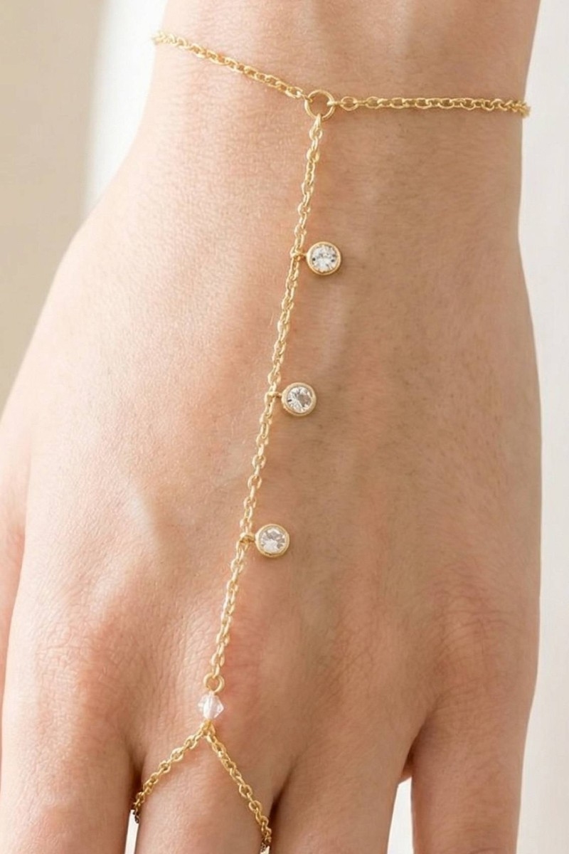 - This chain bracelet showcases a unique cz bezel hand ring style. Immerse yourself in the world of understated glamour as this chain bracelet effortlessly exudes timeless appeal.