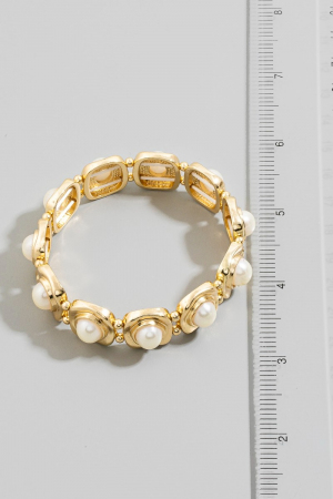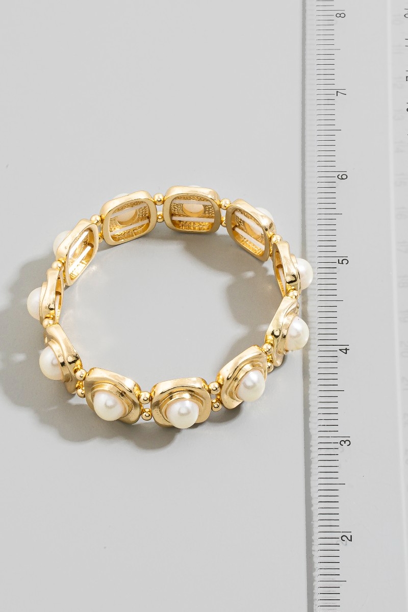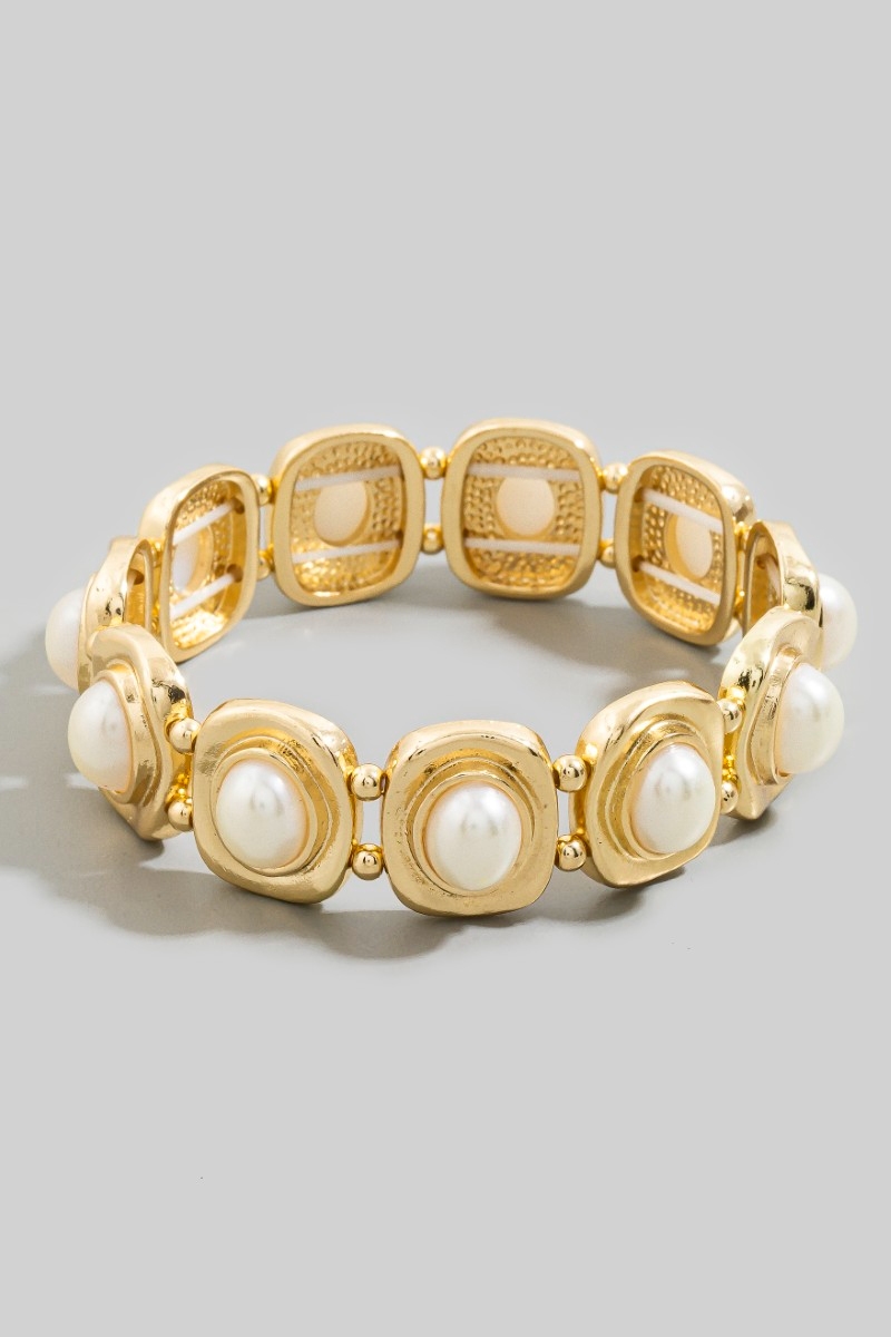 - This stretch bracelet introduces a unique gold square pearl cabochon style. Redefine your look effortlessly with this standout, on-trend piece.