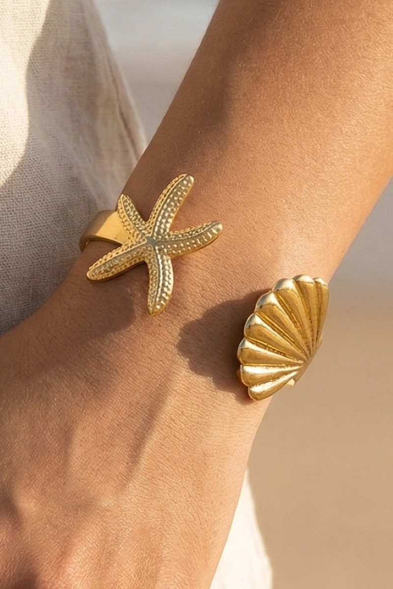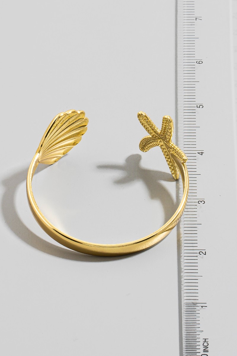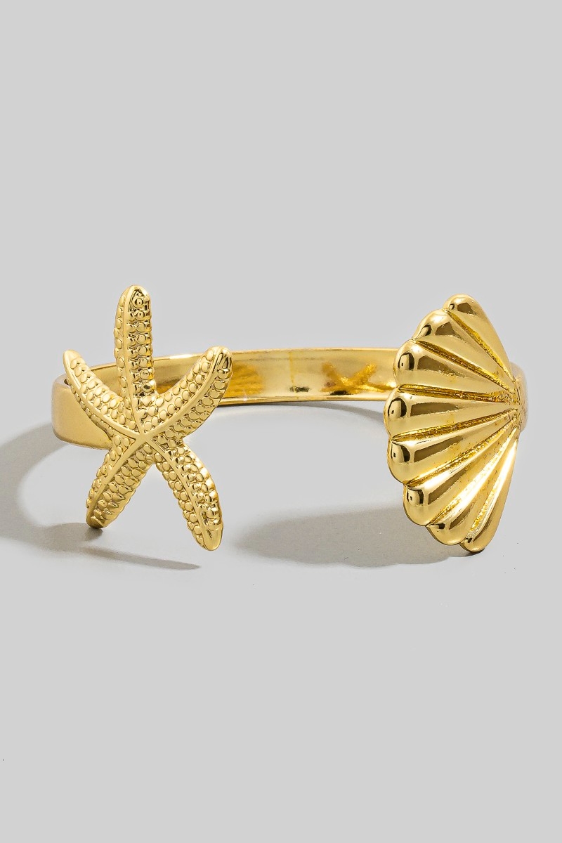 Starfish Sea Shell Open Cuff Bracelet