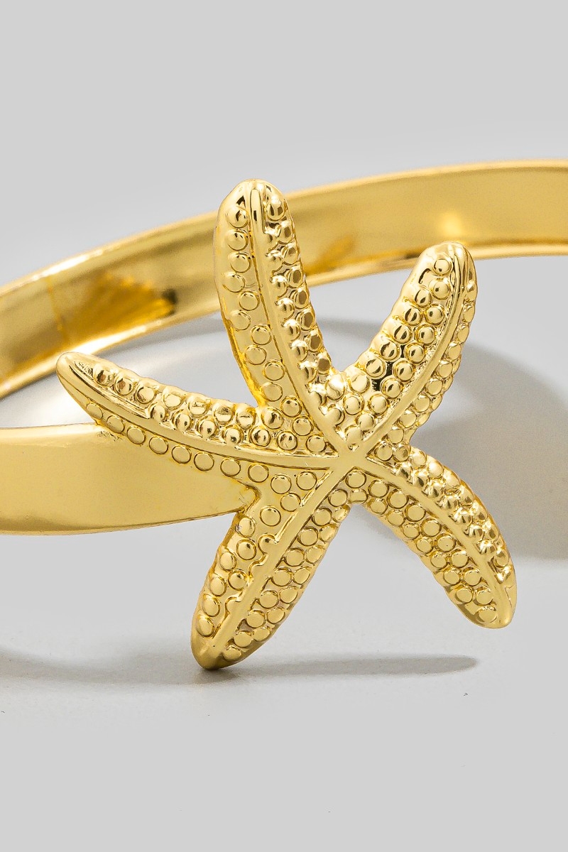 • This cuff bracelet introduces a unique starfish shell flat style. Immerse yourself in the details of design, as this cuff bracelet effortlessly becomes a conversation starter.