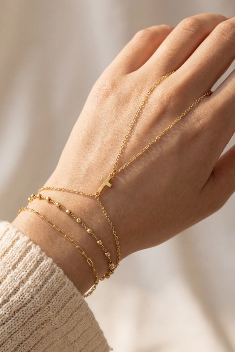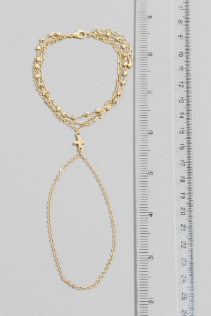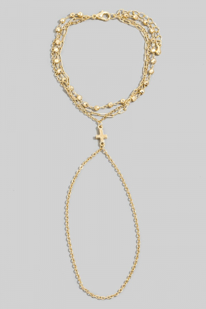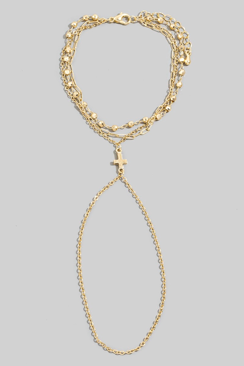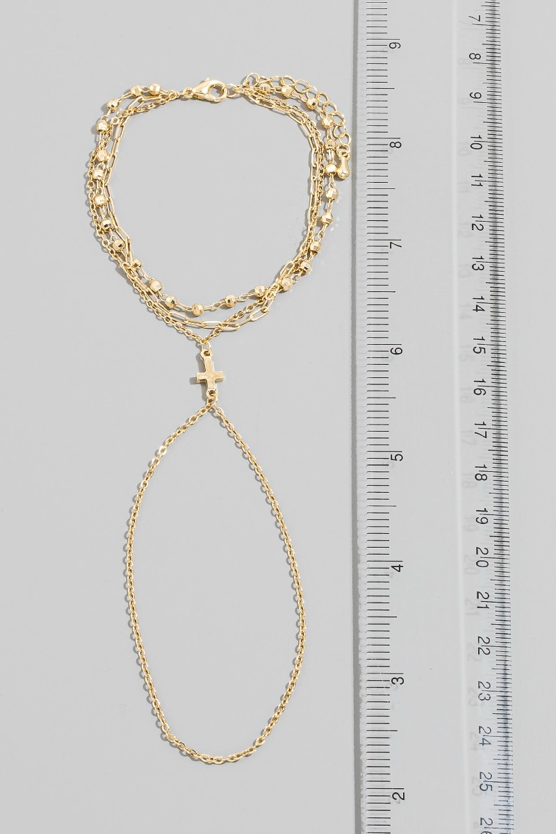- This bracelet brings a unique cross multi chain hand style. Experience a burst of creativity in accessorizing as this piece effortlessly sets the tone for your unique style.