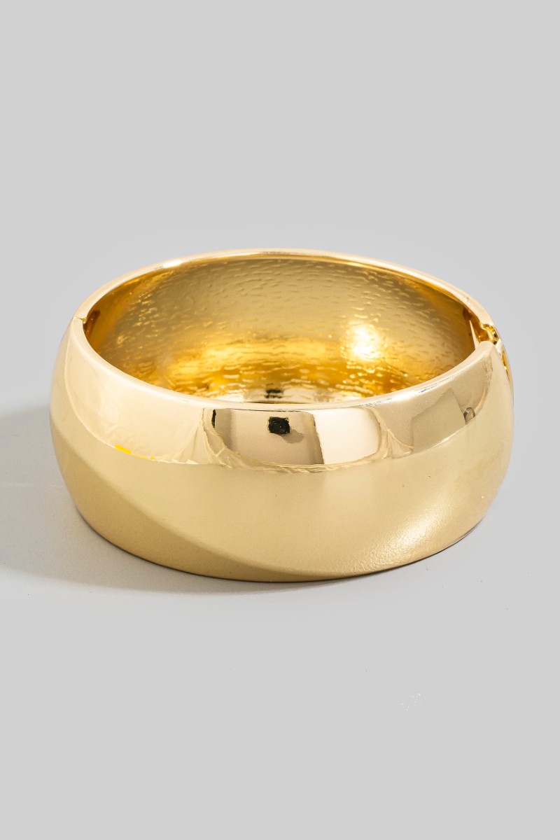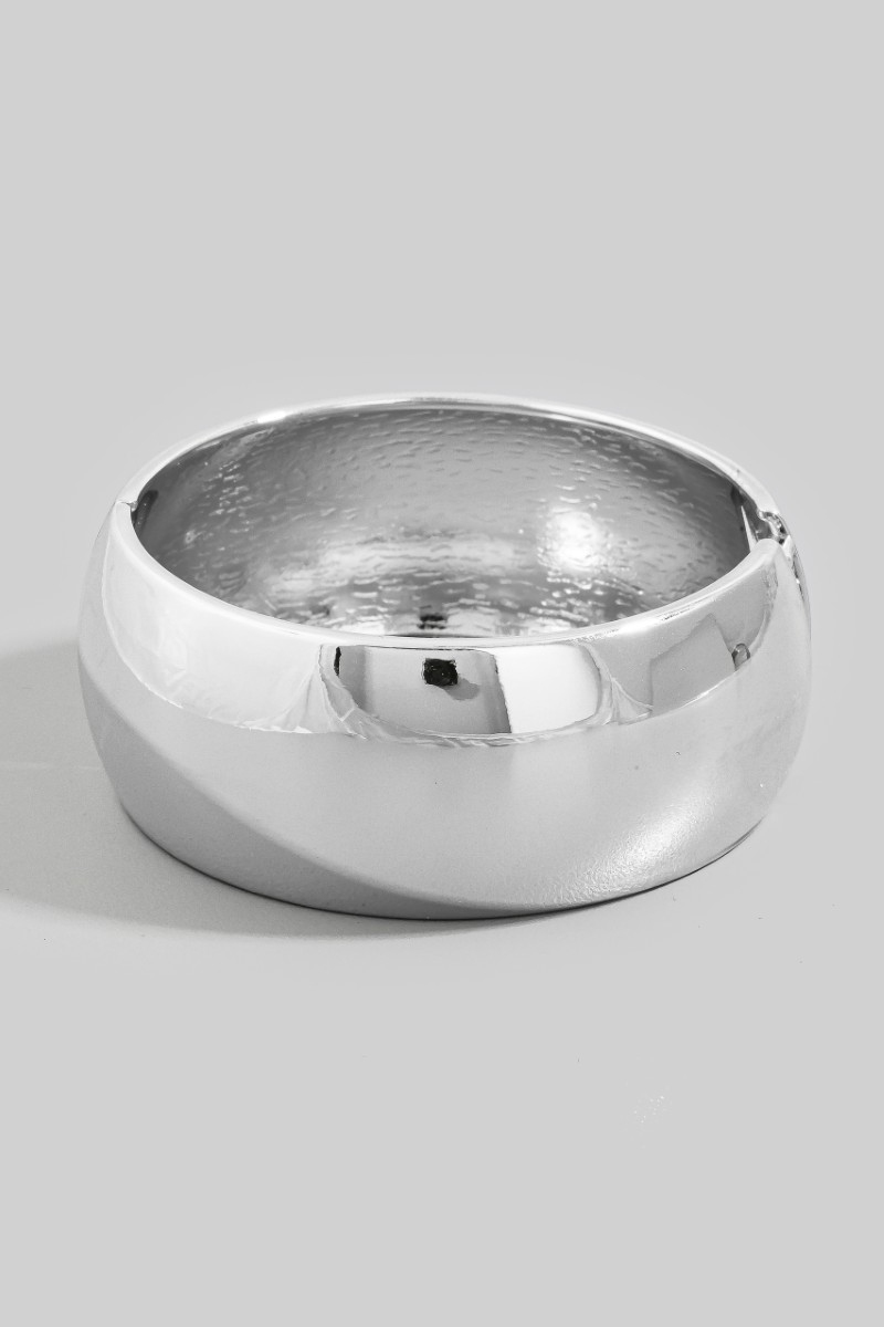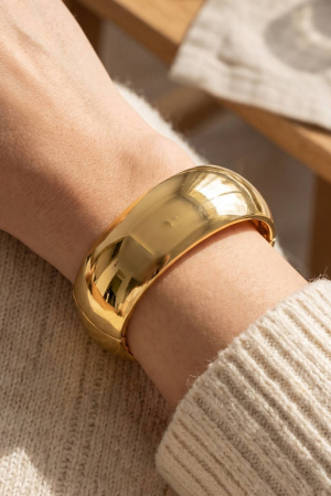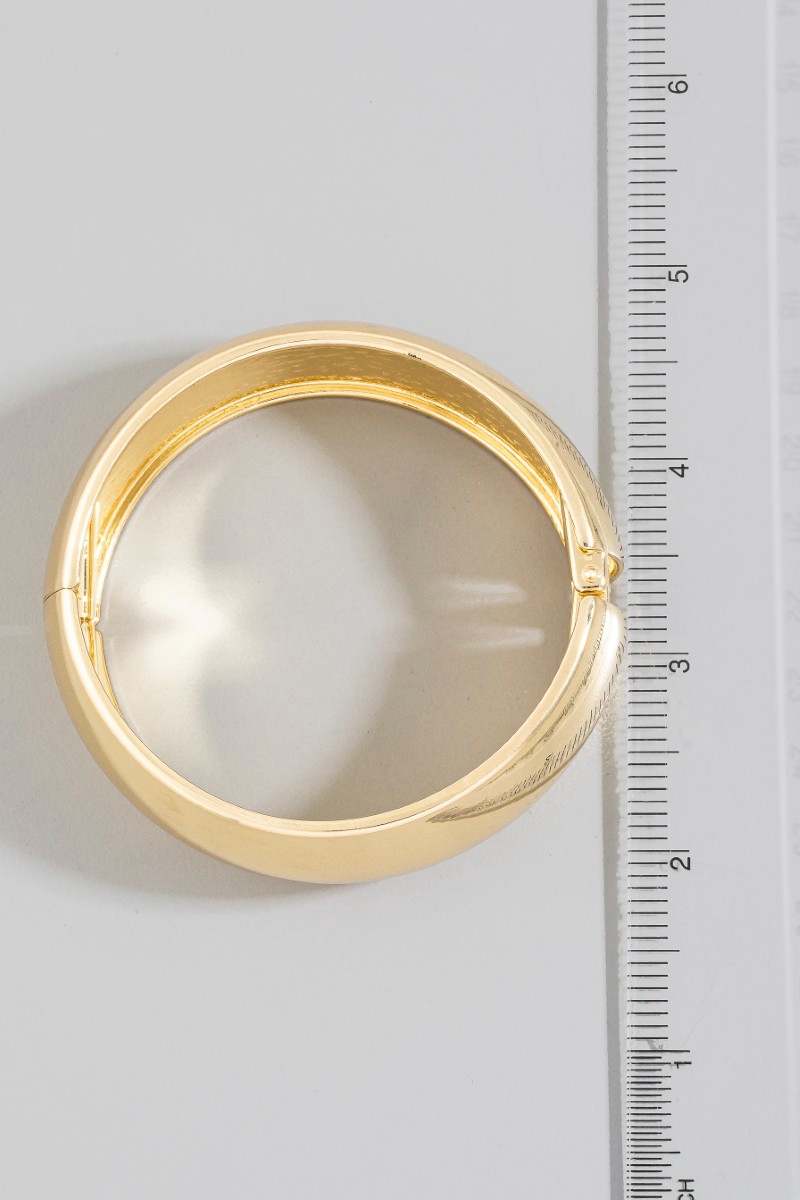 • This bangle bracelet features a fashionable wide smooth dome hinged style. Redefine your look effortlessly with this standout, on-trend piece.