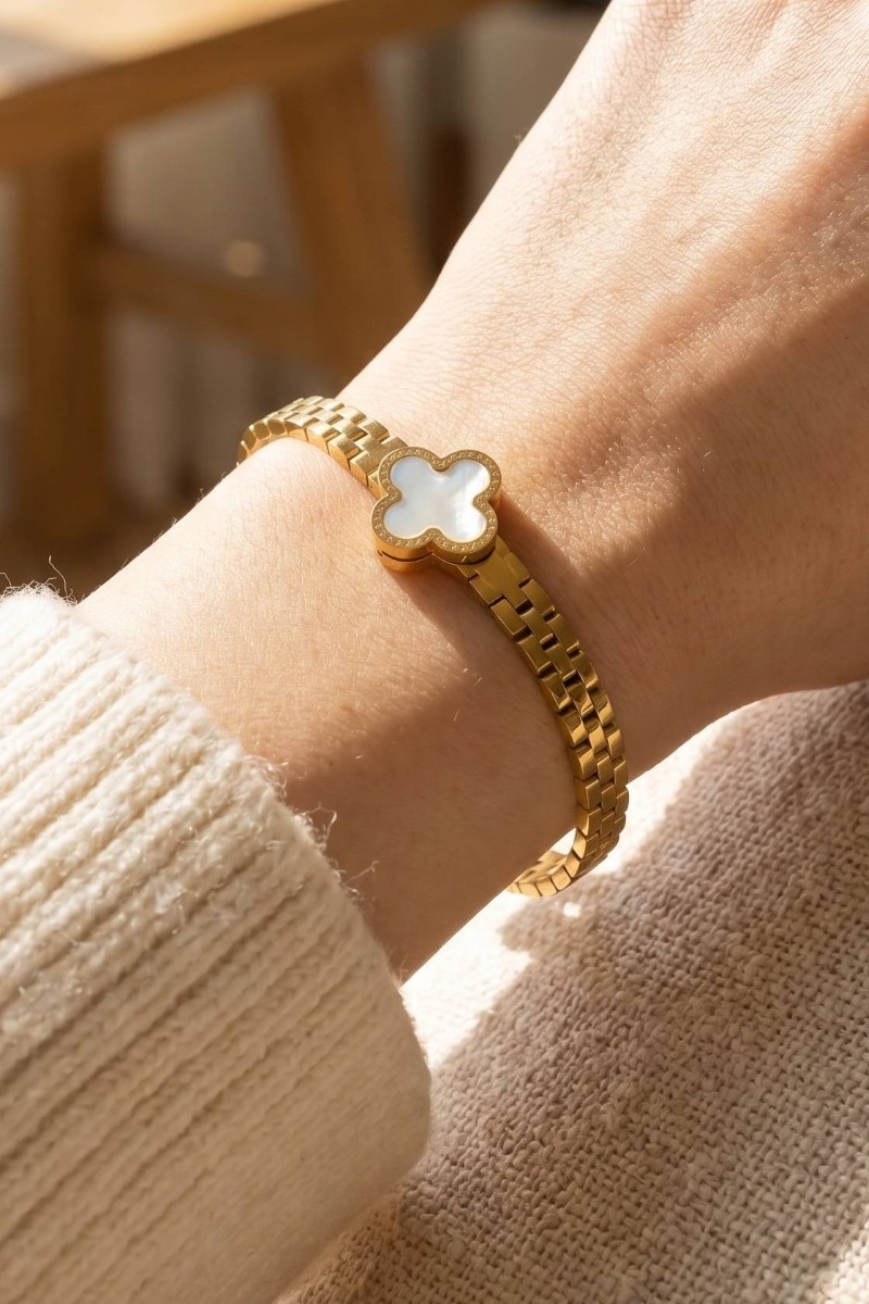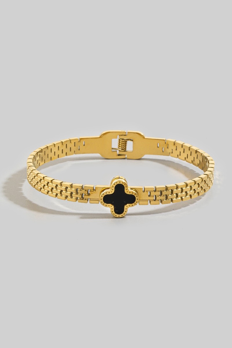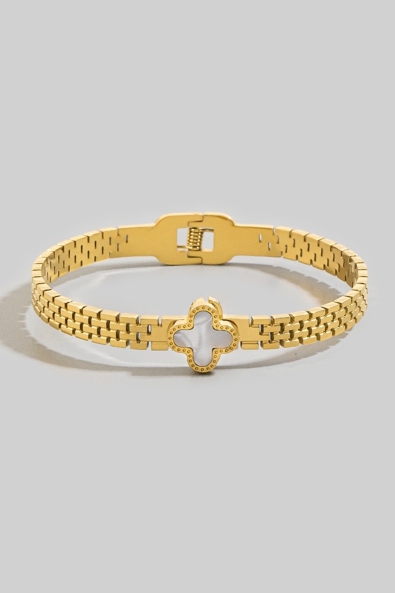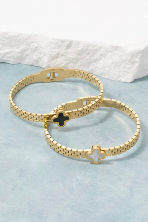 - This chain bracelet introduces a unique clover center watch band style. Delight in the nuanced details that make this chain bracelet a testament to fine design and impeccable taste.