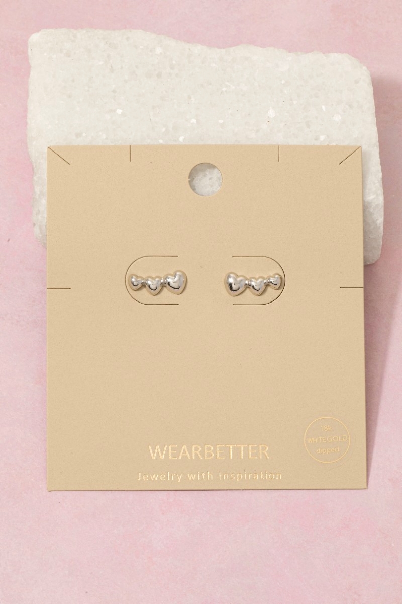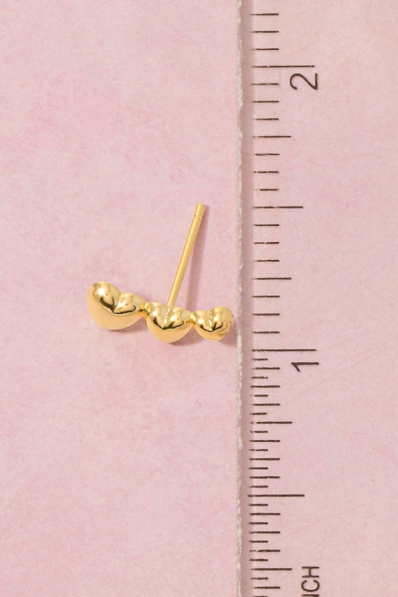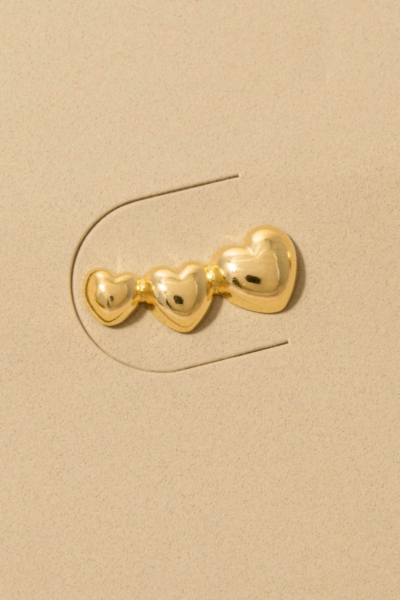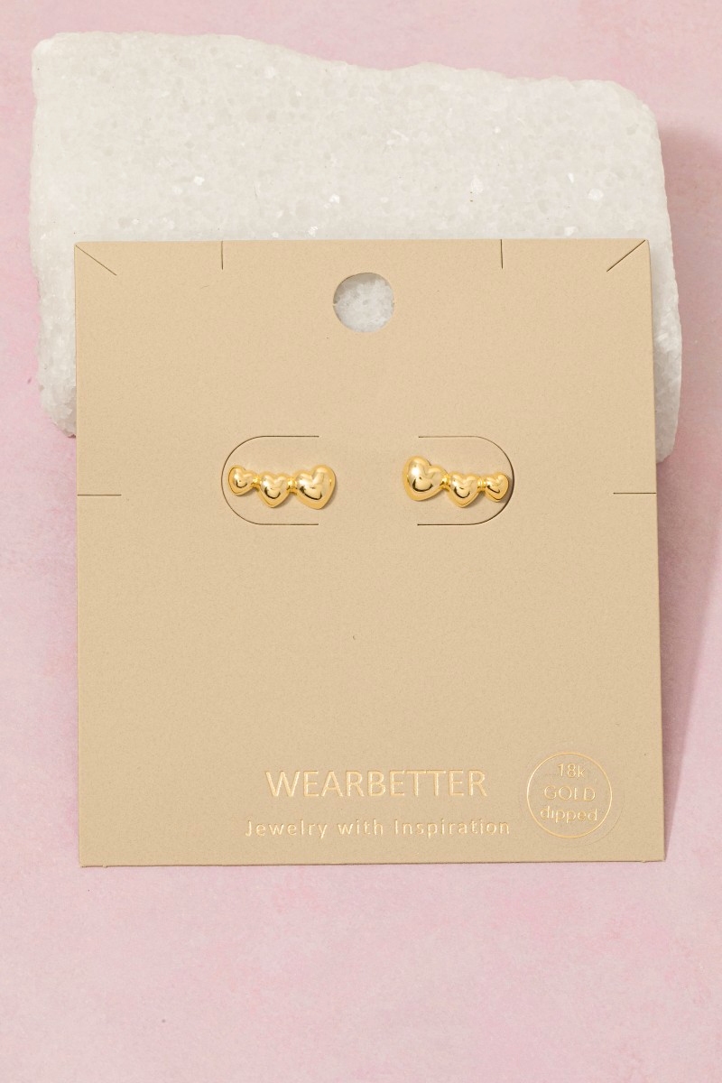 • This pair of stud earrings adds a modern gold dipped triple heart bar style. Step into a world of refined taste as this pair of stud earrings effortlessly refines the details of your outfit.