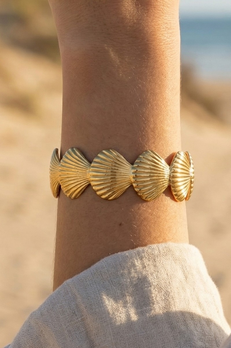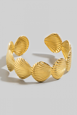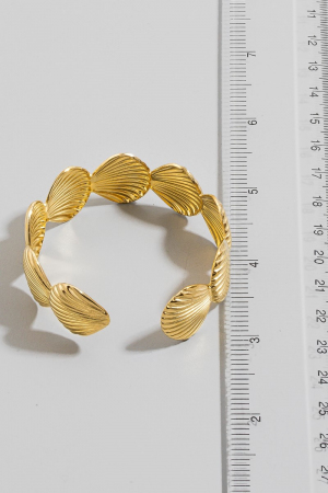 • This cuff bracelet brings a luxurious ridged clam shell style. Experience refined sophistication with this understated yet stylish piece.