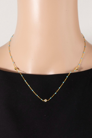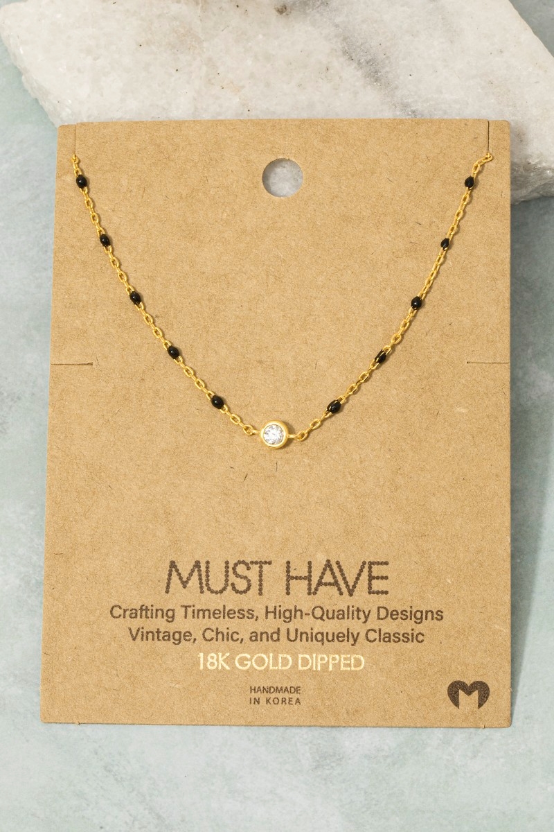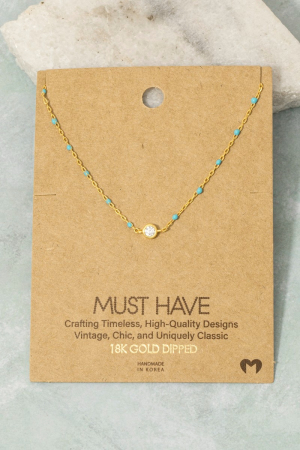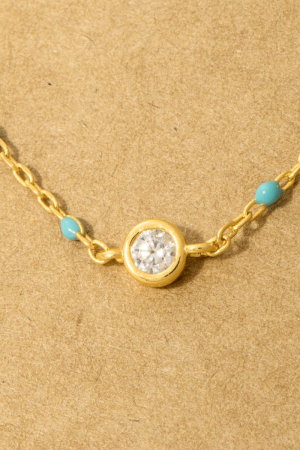 Gold Dipped Bar Pendant Enamel Accent Necklace