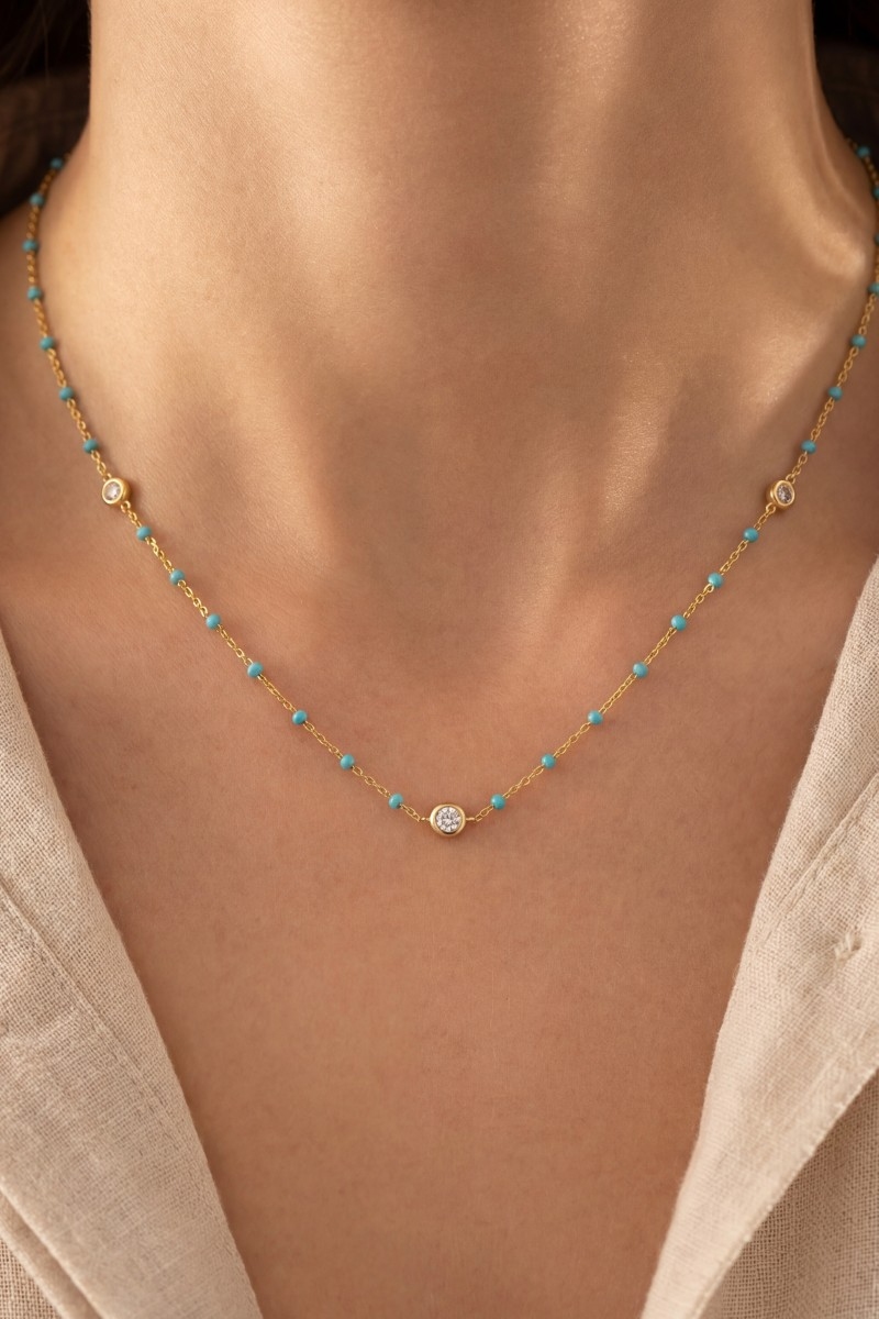Gold Dipped Mini Cz Dainty Chain Necklace