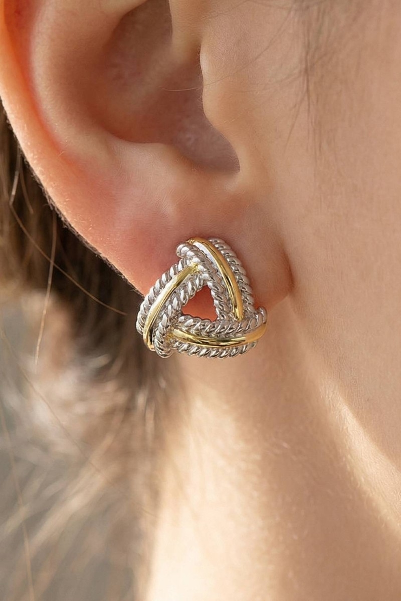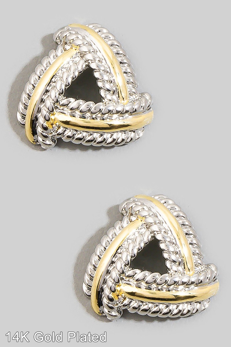 - This pair of stud earrings adds a modern gold dipped two tone triangle weave style. Celebrate individual style with this versatile, eye-catching addition.
