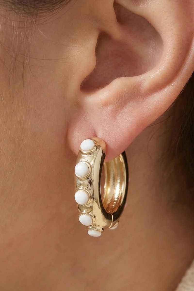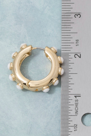 • This pair of hoop earrings features a fashionable white beads accent chunky style. Celebrate individual style with this versatile, eye-catching addition.