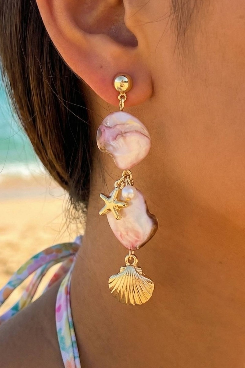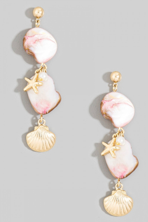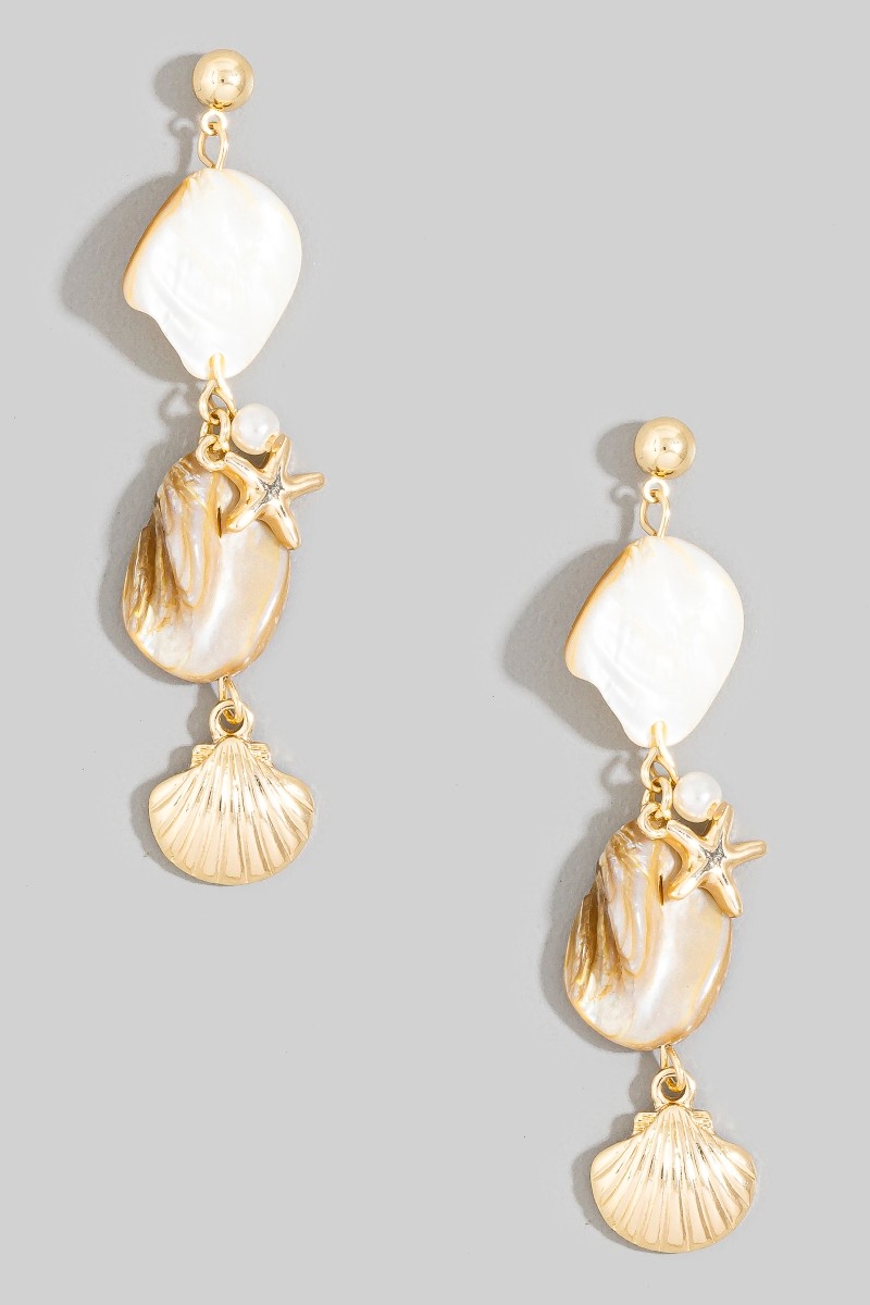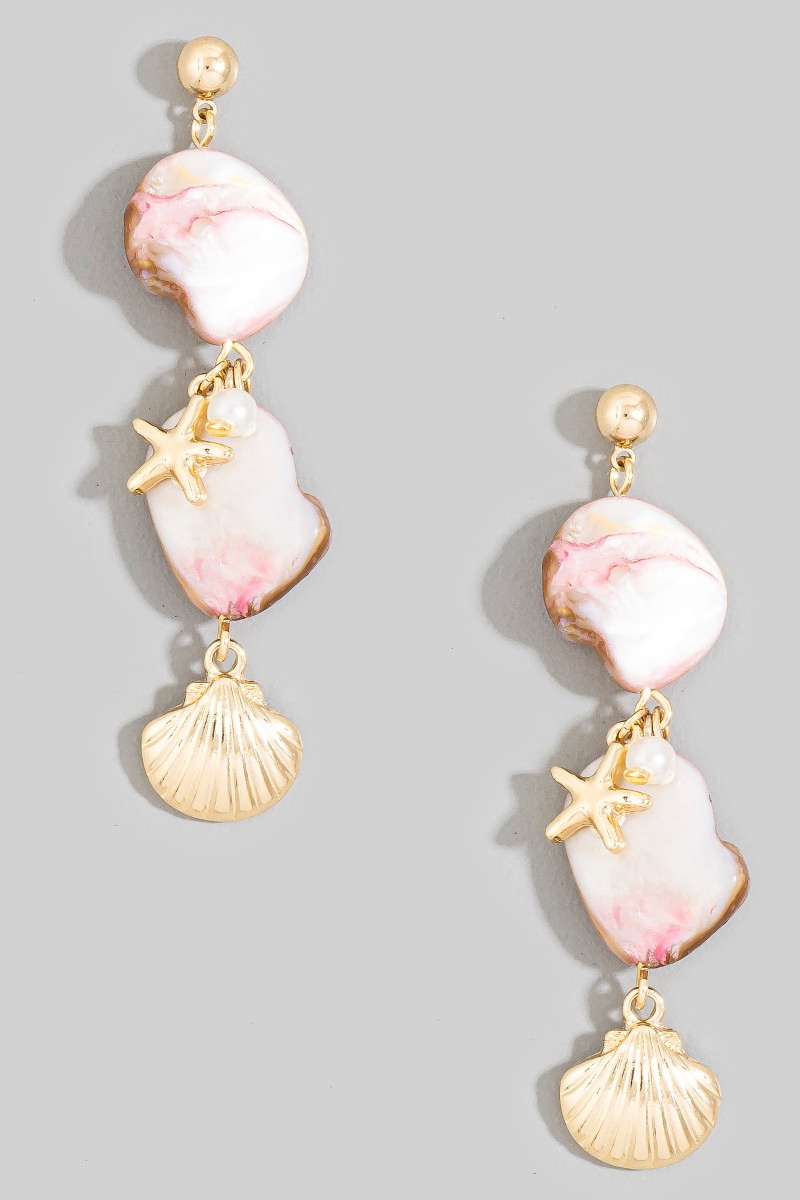 • This pair of drop earrings showcases a unique pearl and sea charms style. Explore a blend of classic charm and contemporary flair.