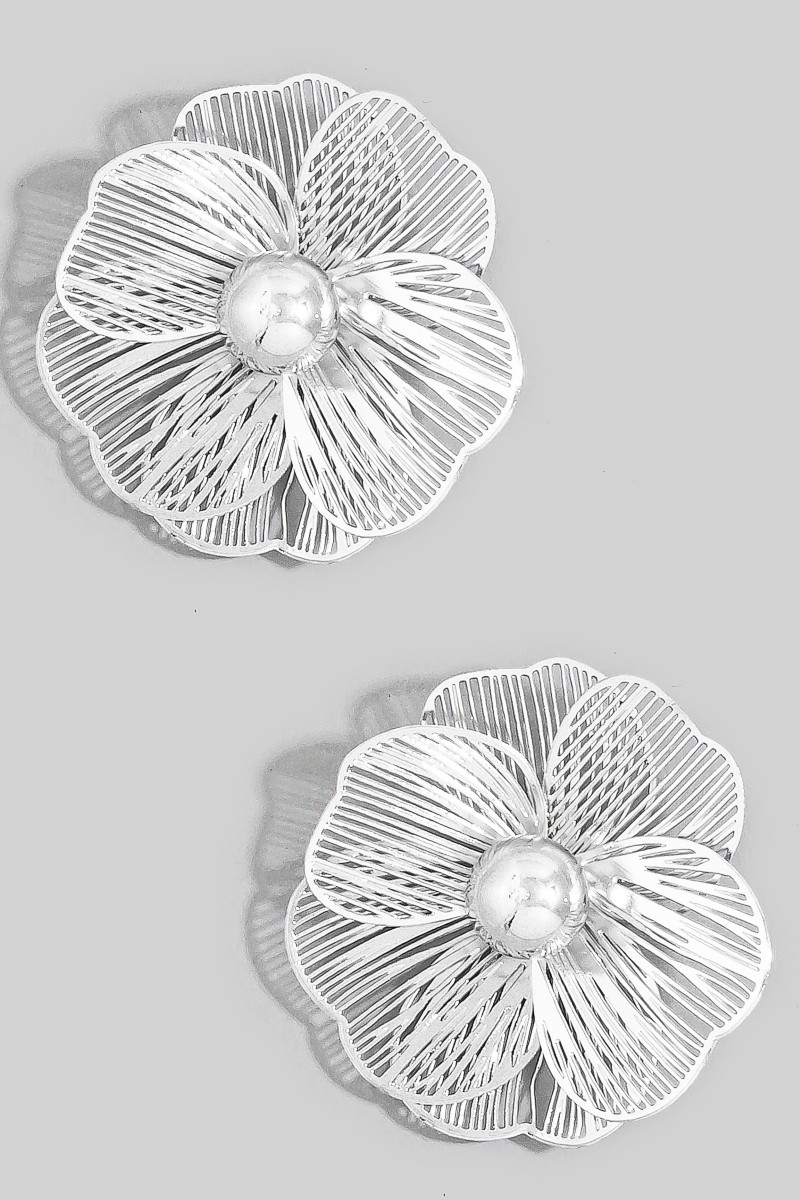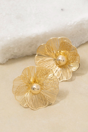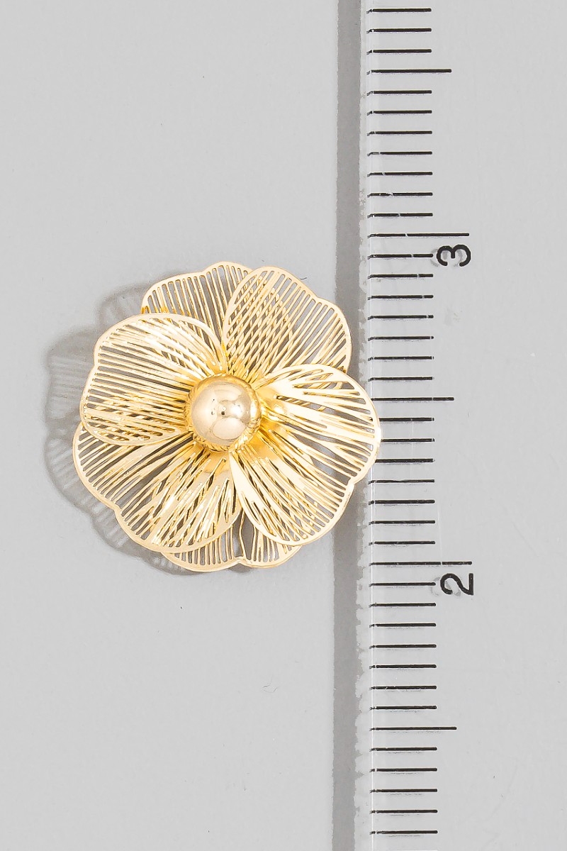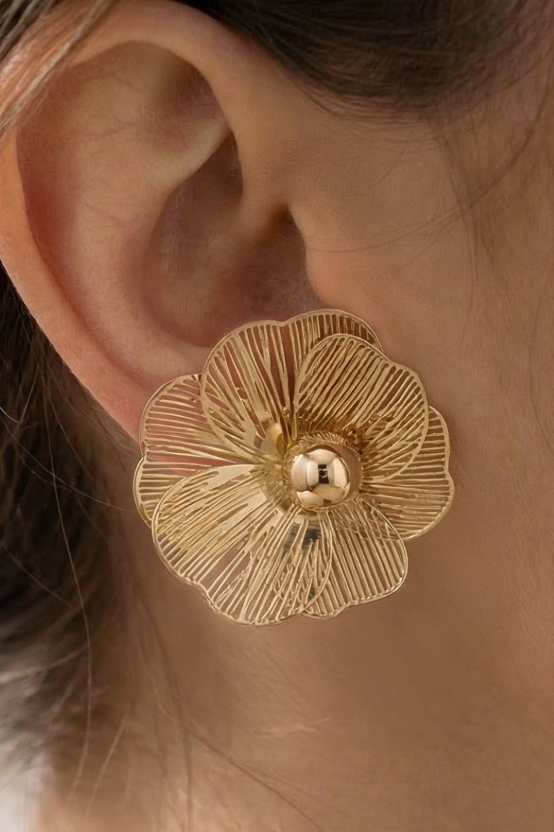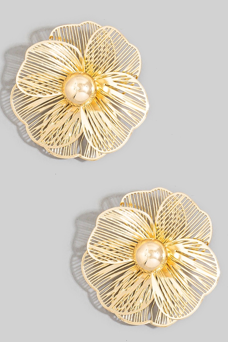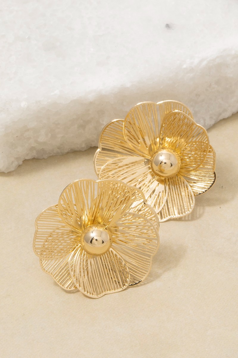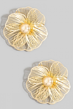 • This pair of stud earrings introduces a stunning oversized gold filigree flower style. Immerse yourself in the world of understated glamour as this pair of stud earrings effortlessly exudes timeless appeal.