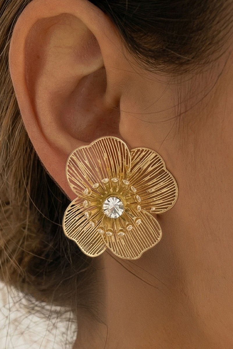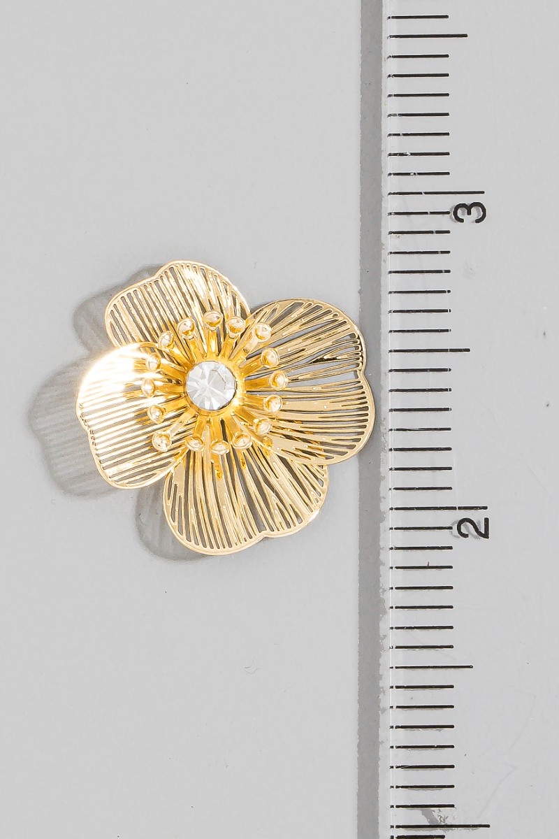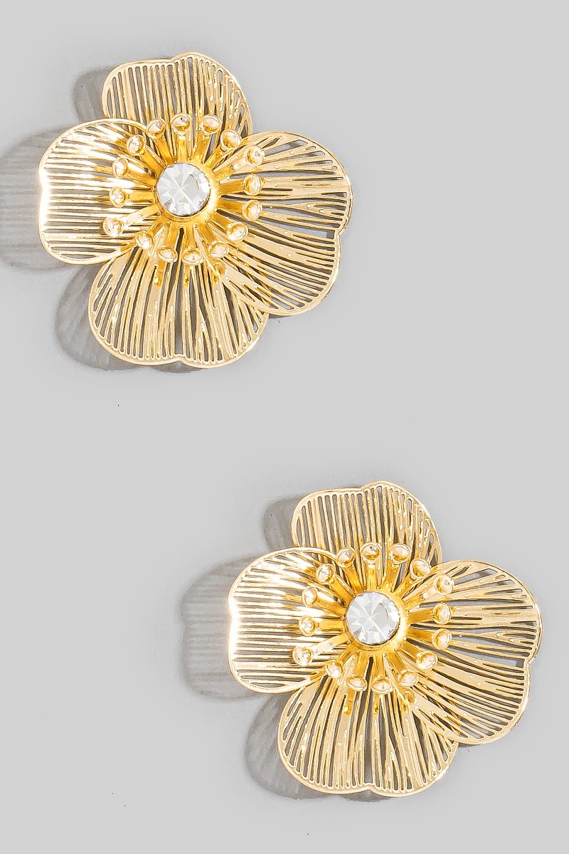 • This pair of stud earrings brings a unique gold filigree flower cubic zirconia center style. Celebrate individuality with this pair of stud earrings that effortlessly expresses your unique sense of style.