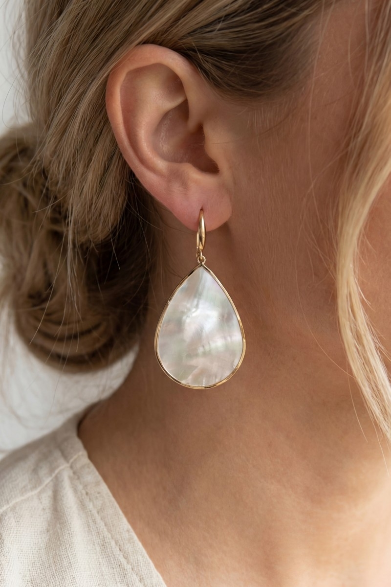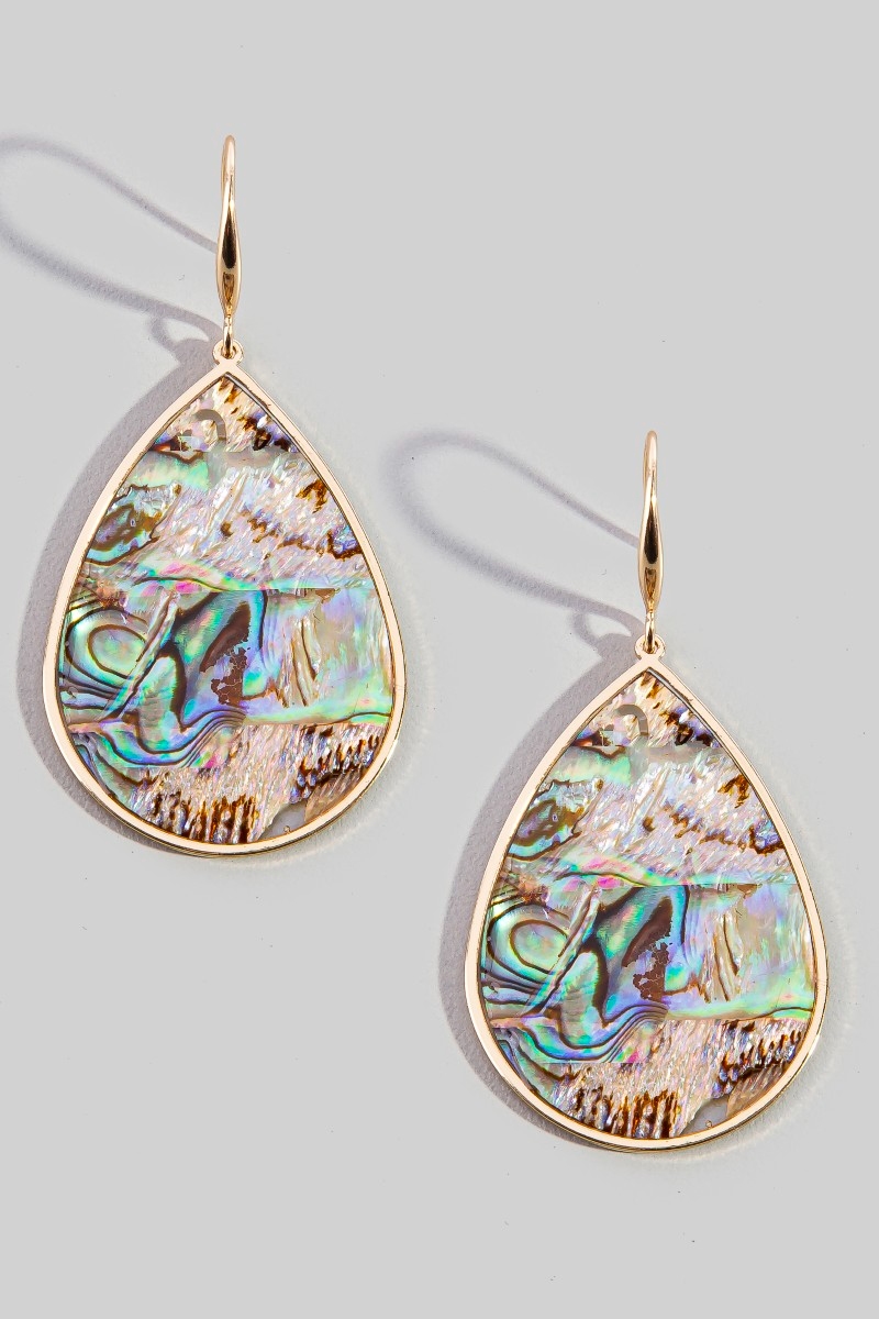 - This pair of dangle earrings adds a modern gold bezel iridescent shell style. Immerse yourself in the world of understated glamour as this pair of dangle earrings effortlessly exudes timeless appeal.