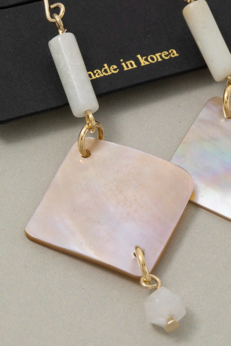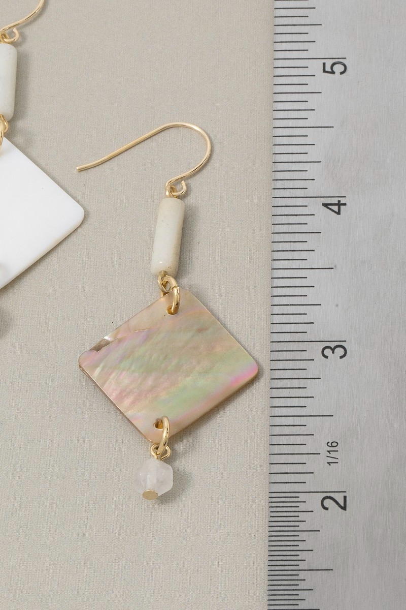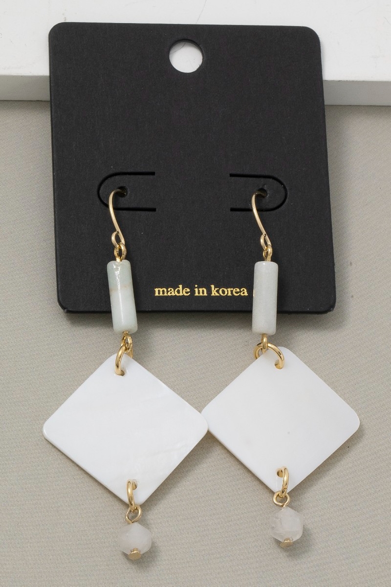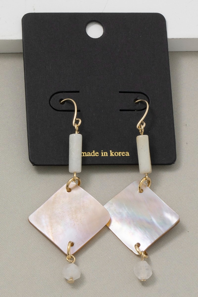 - This pair of earrings features a fashionable ivory shell diamond drop bead style. Delight in the intricate details that make this pair of earrings an essential element in expressing your fashion identity.