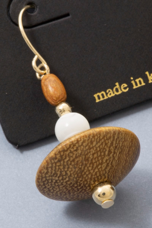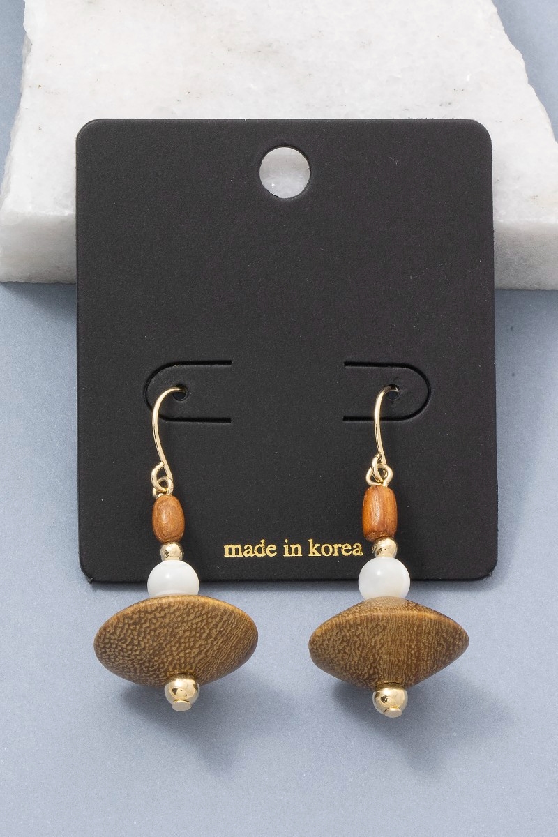• This pair of drop earrings brings a unique wood bead natural disc style. Elevate your ensemble with this pair of drop earrings that effortlessly captures the essence of refined fashion.
