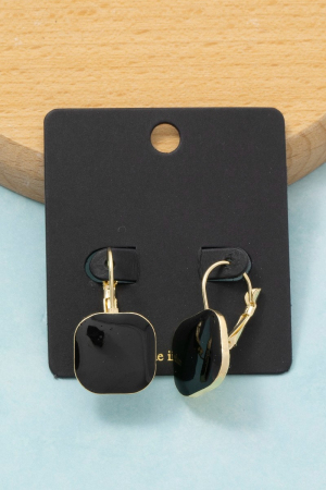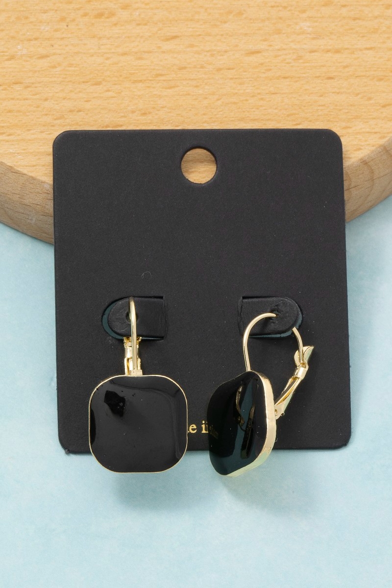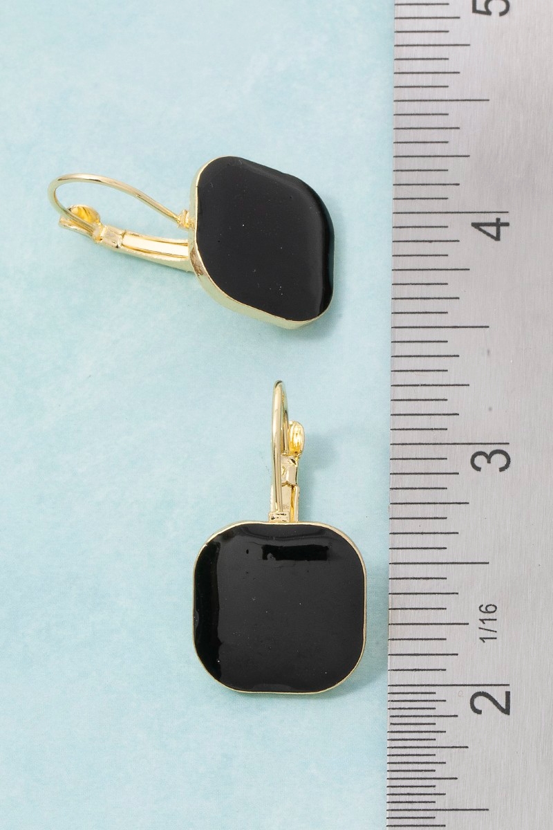 • This pair of earrings displays a fashionable gold black onyx square leverback style. Discover the perfect balance of subtlety and flair as this pair of earrings effortlessly completes your look.
