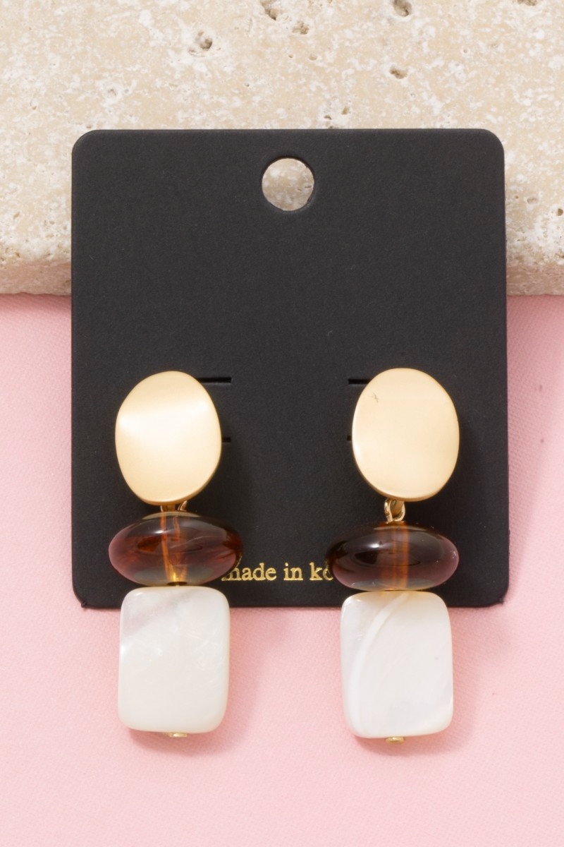 Stone Bead Mother Of Pearl Disc Drop Earrings