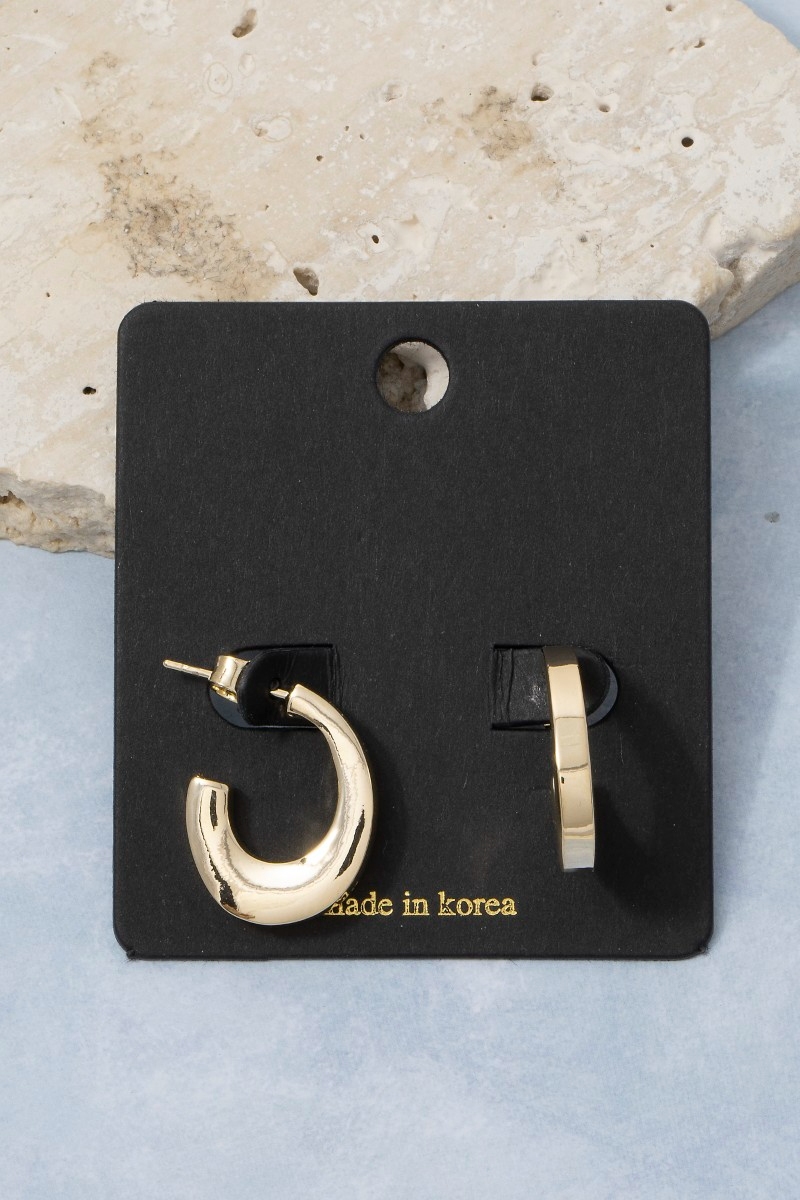 - This pair of hoop earrings introduces a unique gold mini chunky style. Immerse yourself in the world of understated glamour as this pair of hoop earrings effortlessly exudes timeless appeal.