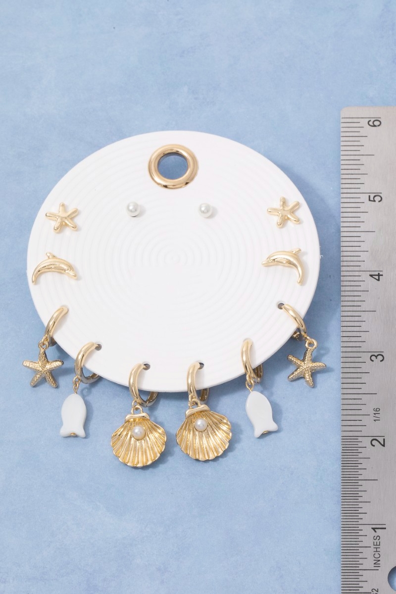 - This pair of earrings displays a fashionable starfish shell ocean charms earring set style. Embark on a journey of sartorial refinement as this pair of earrings effortlessly complements your fashion sense.