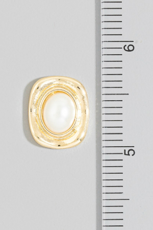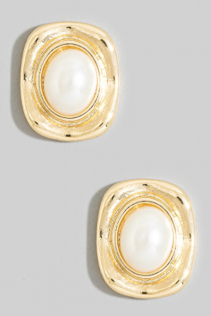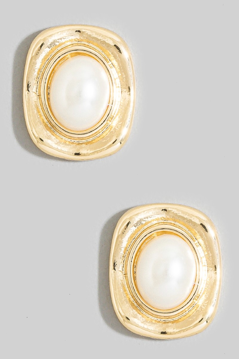 Gold Molten Frame Pearl Square Stud Earrings