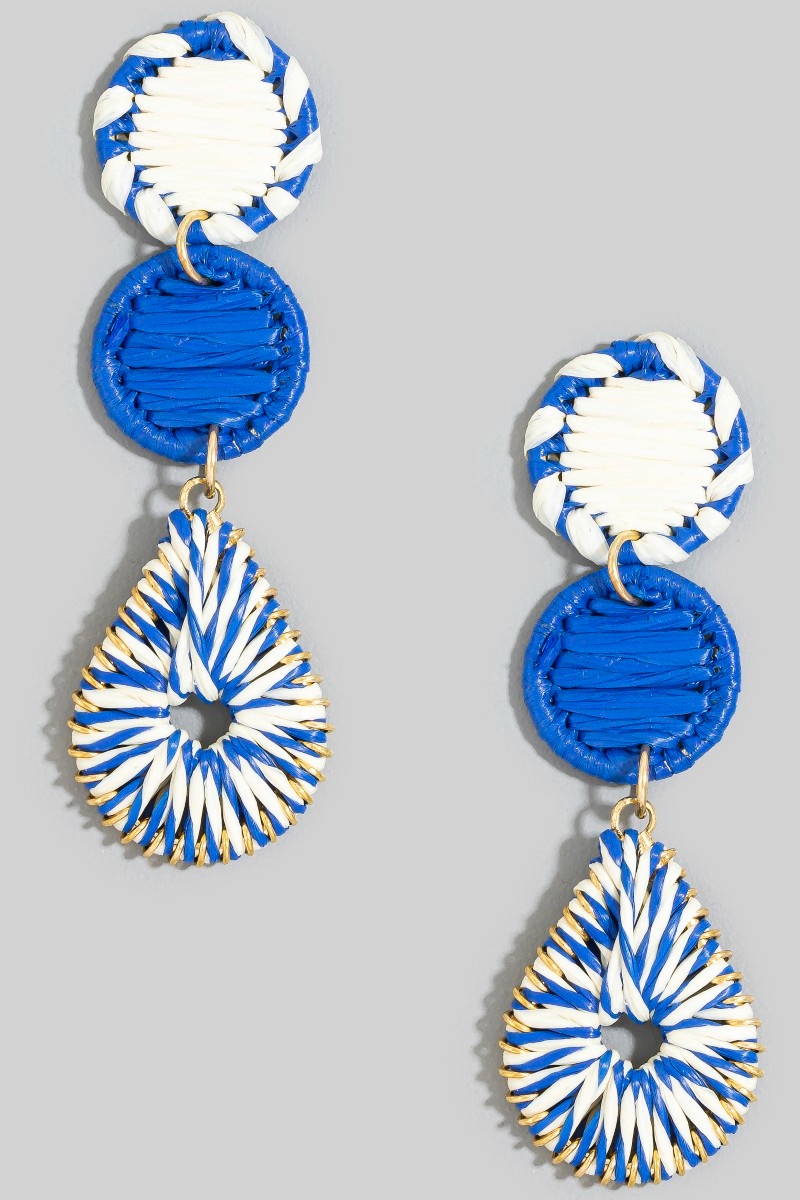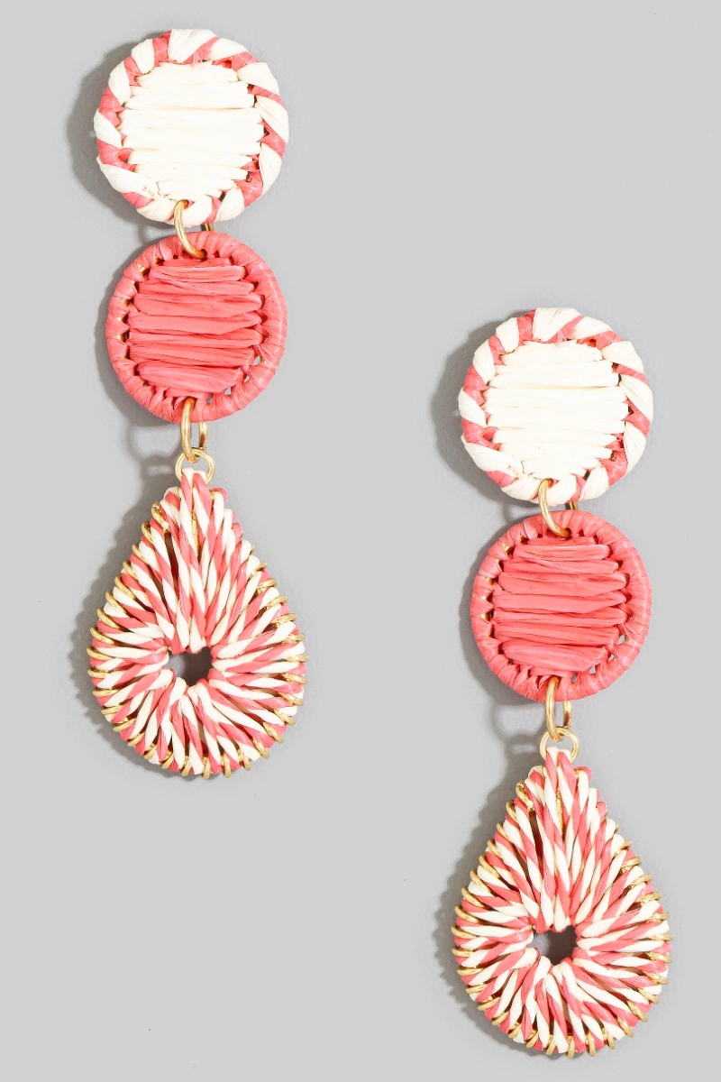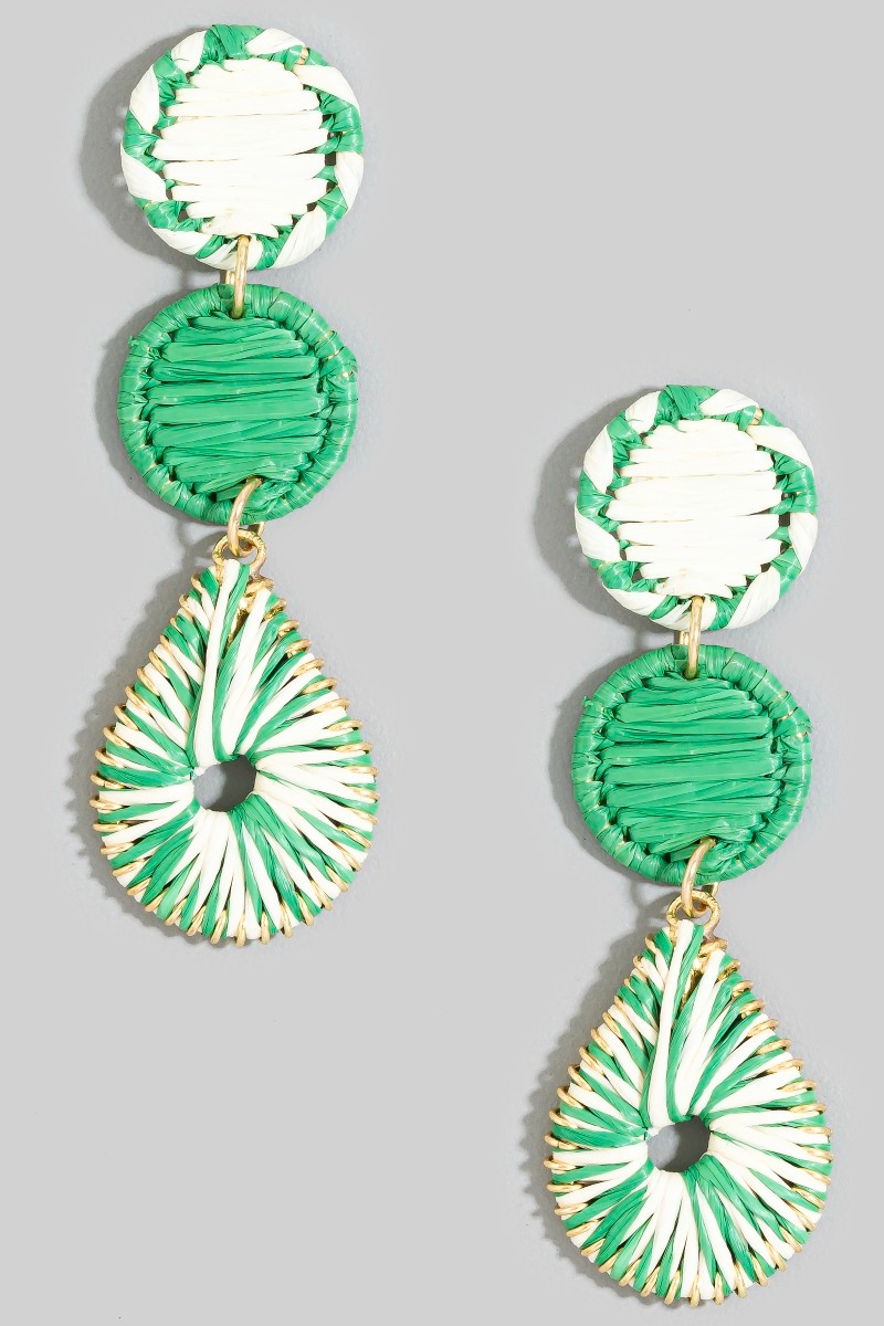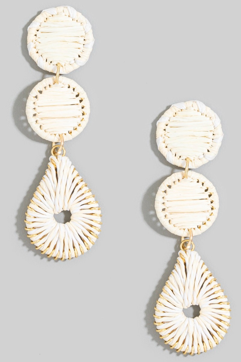 - This pair of drop earrings introduces a stunning woven raffia teardrop style. Celebrate individual style with this versatile, eye-catching addition.