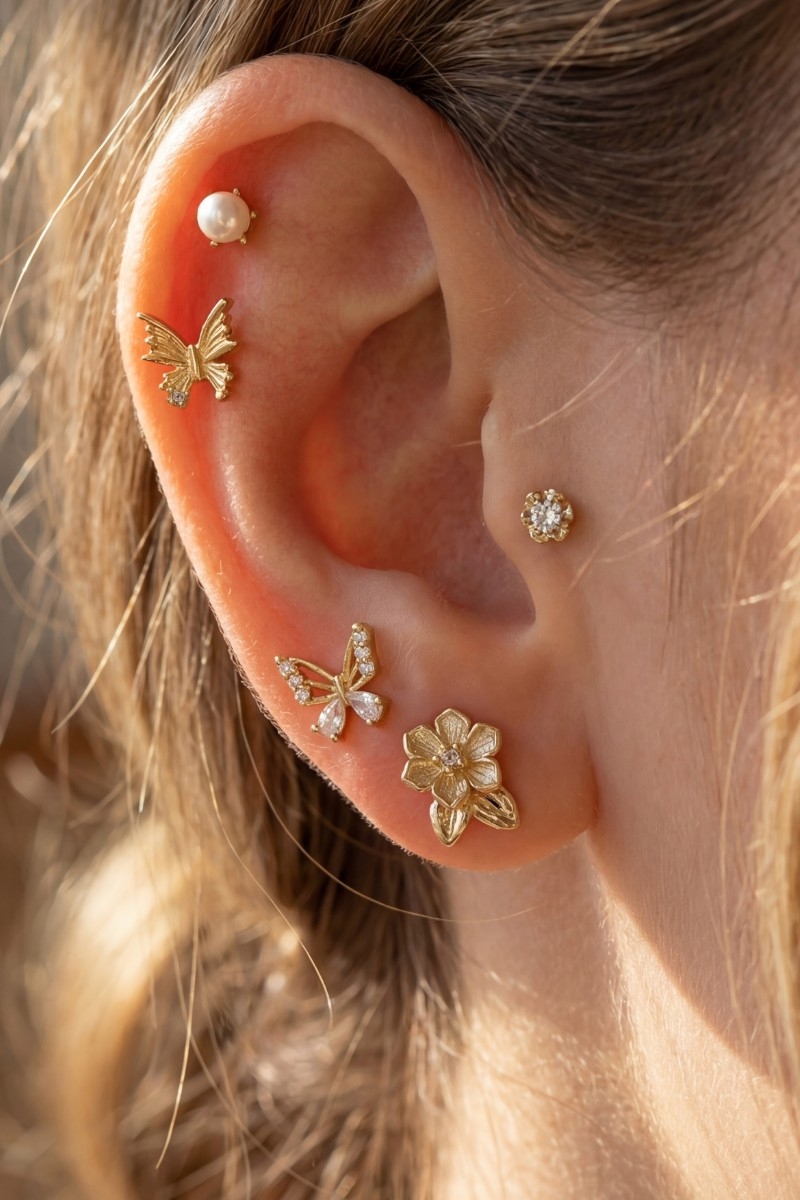 - This pair of earrings introduces a stunning butterfly flower pearl earring set style. Indulge in the allure of exquisite craftsmanship as this pair of earrings effortlessly adds a touch of luxury to your attire.