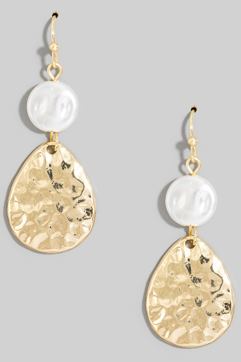 • This pair of drop earrings introduces a stunning freshwater pearl hammered teardrop earrings style. Immerse yourself in the world of understated glamour as this pair of drop earrings effortlessly exudes timeless appeal.