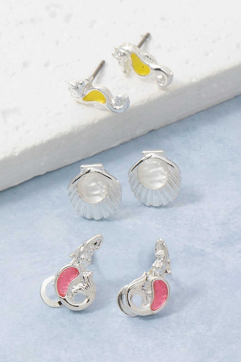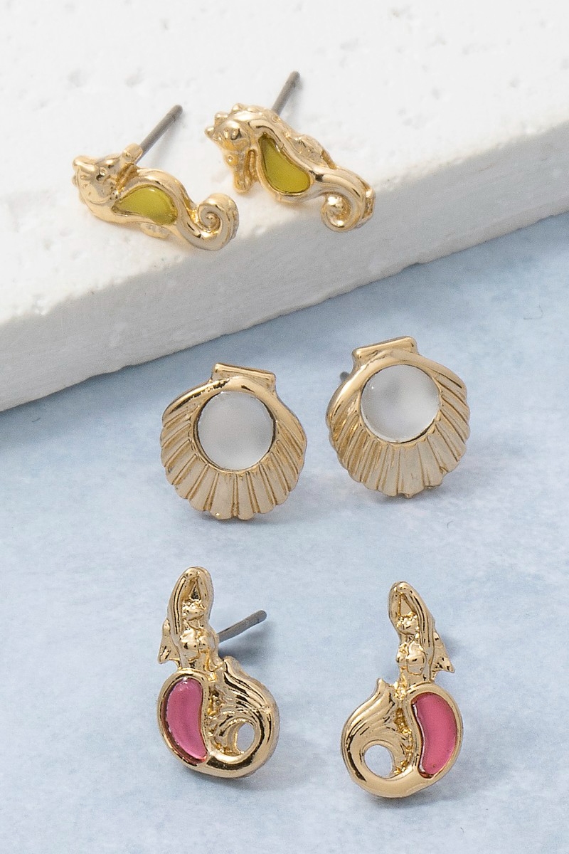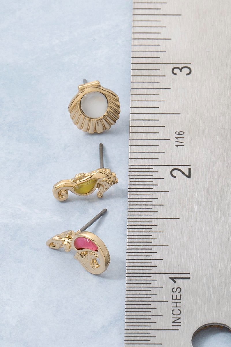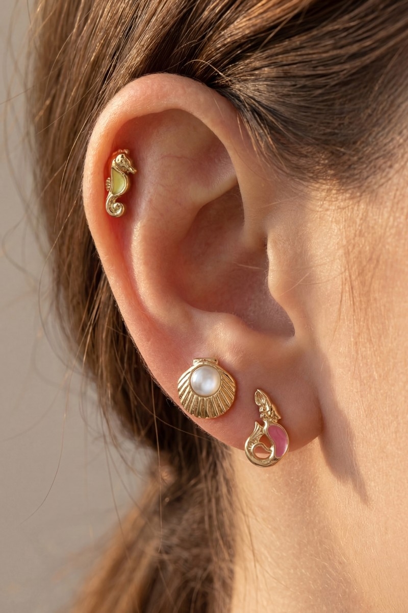 • This pair of stud earrings brings a luxurious seahorse shell mermaid set style. Discover the perfect balance of functionality and fashion.