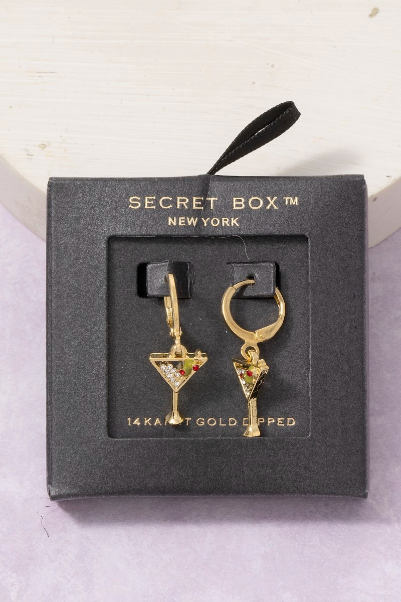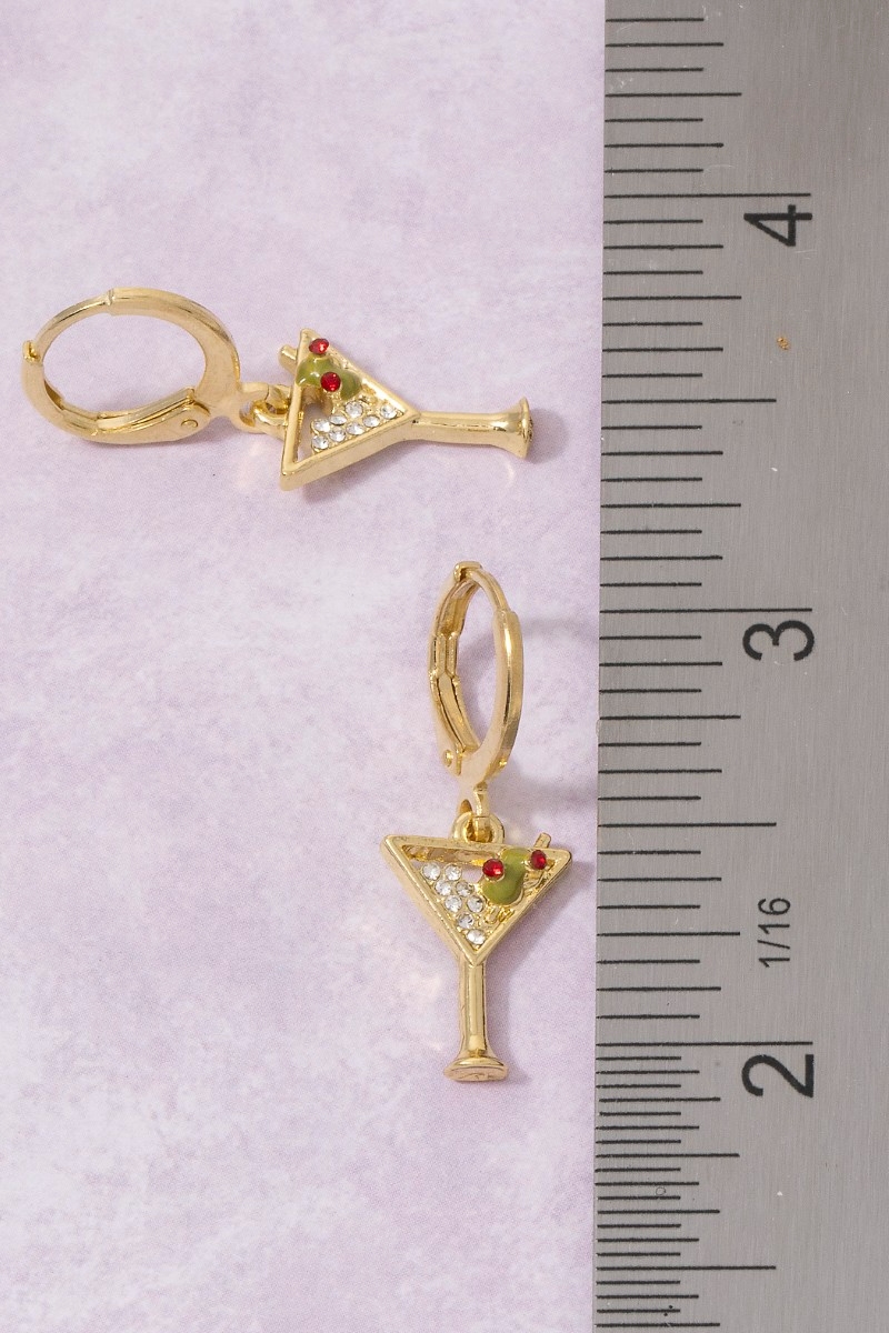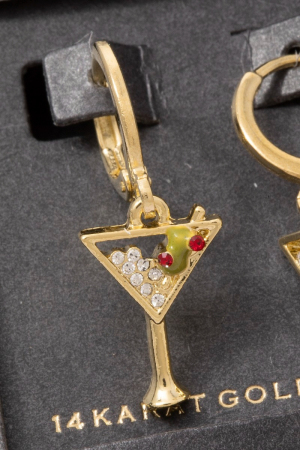 - This pair of earrings showcases a timeless 14k gold dipped cubic zirconia martini glass huggie style. Celebrate individual style with this versatile, eye-catching addition.