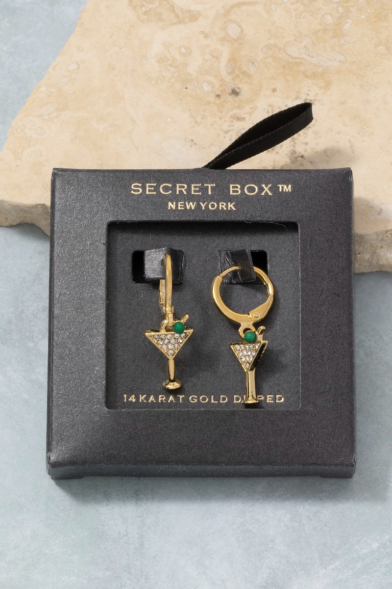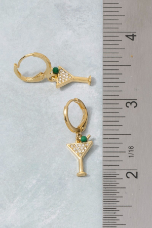14K Gold Dipped Cz Martini Glass Huggie Earrings